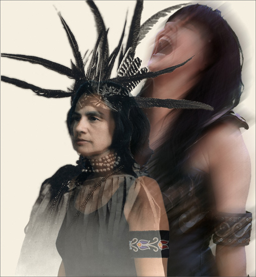“The images from my series, Plain(s) Warrior Artist, depicted this continueing struggle to find my place in the world, only a shift has occured; instead of looking outside for a hero, I become one.”