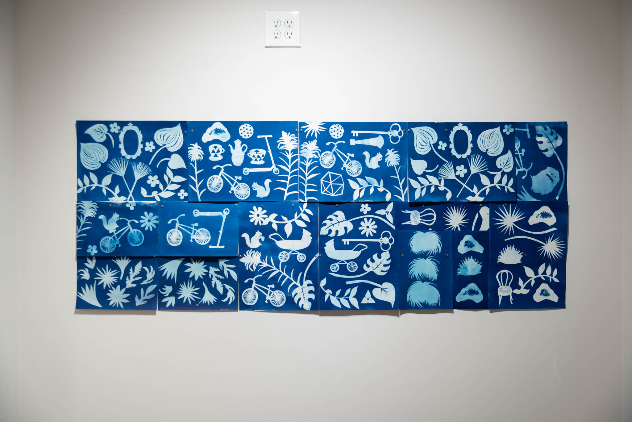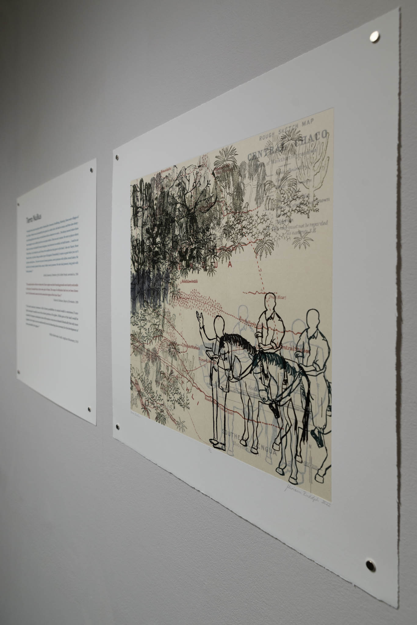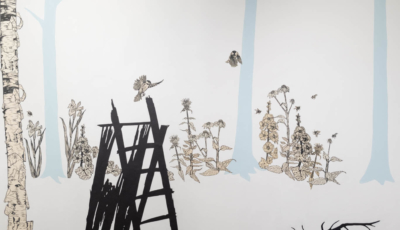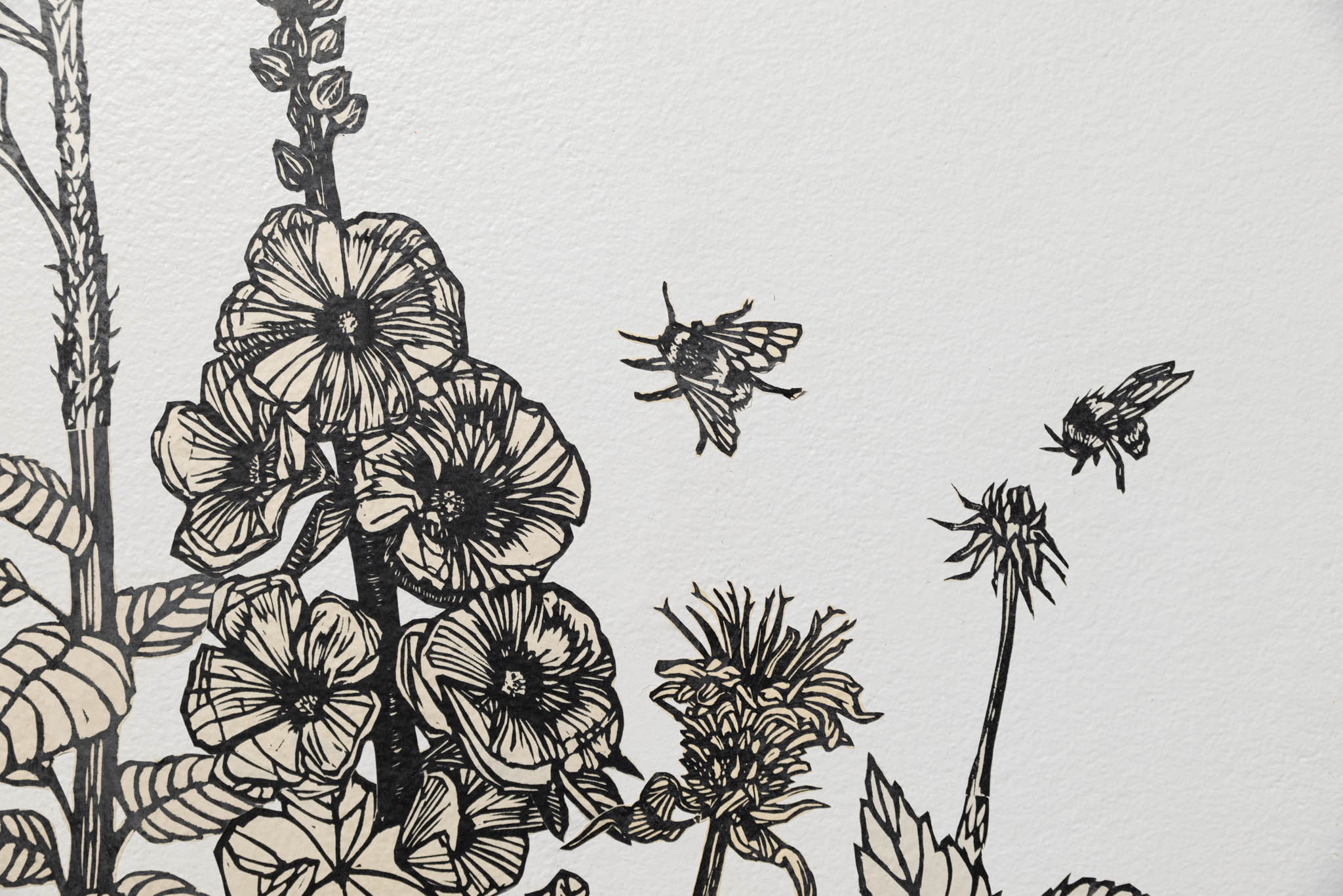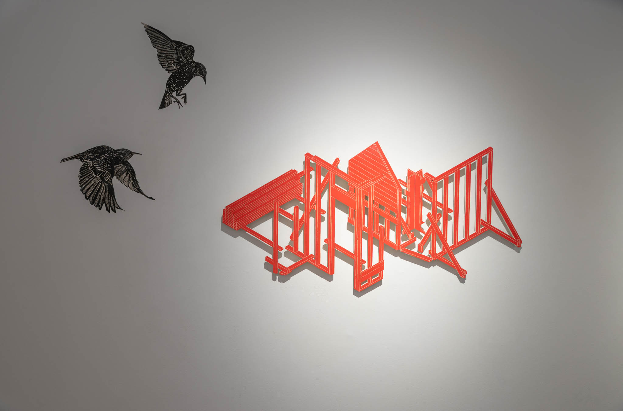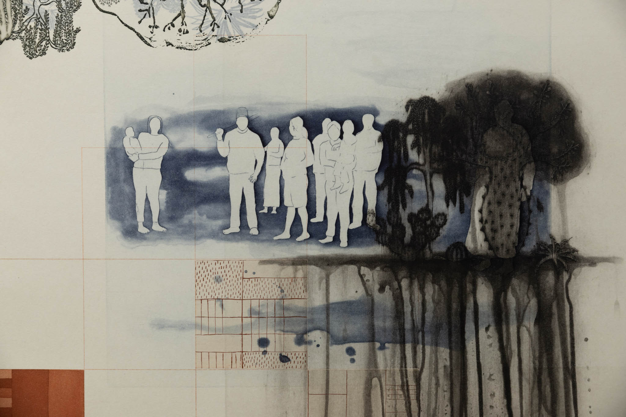 The exhibition takes an immersive form, with life-sized prints and painted imagery as mural components, and structural imagery emerging from the walls like a pop-up book at human-scale. Rich with layers and detail, Keeping Time invites viewers to experience the work in the way they may have become lost in books or illustrations as a child.
