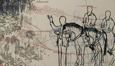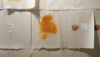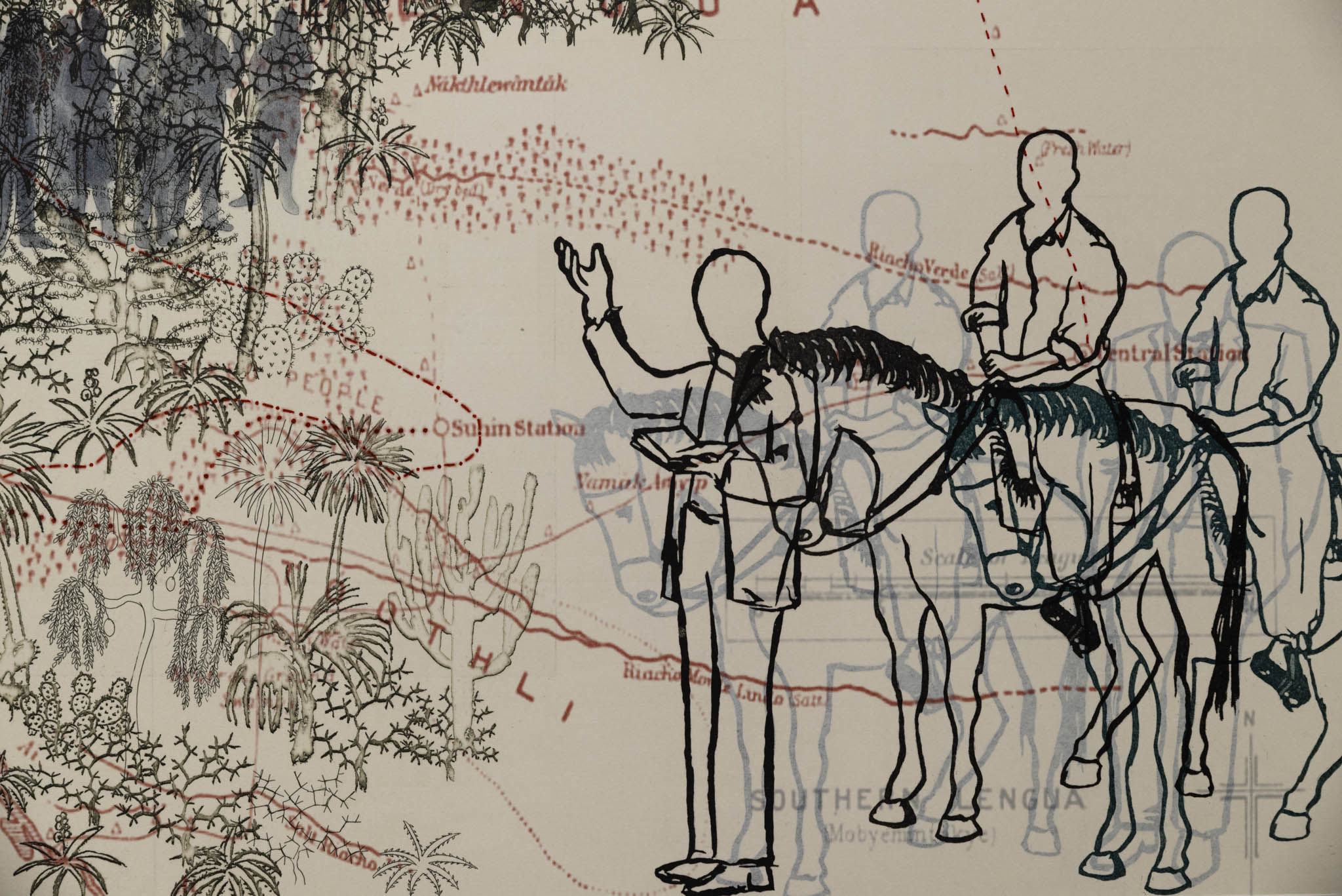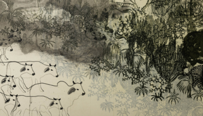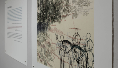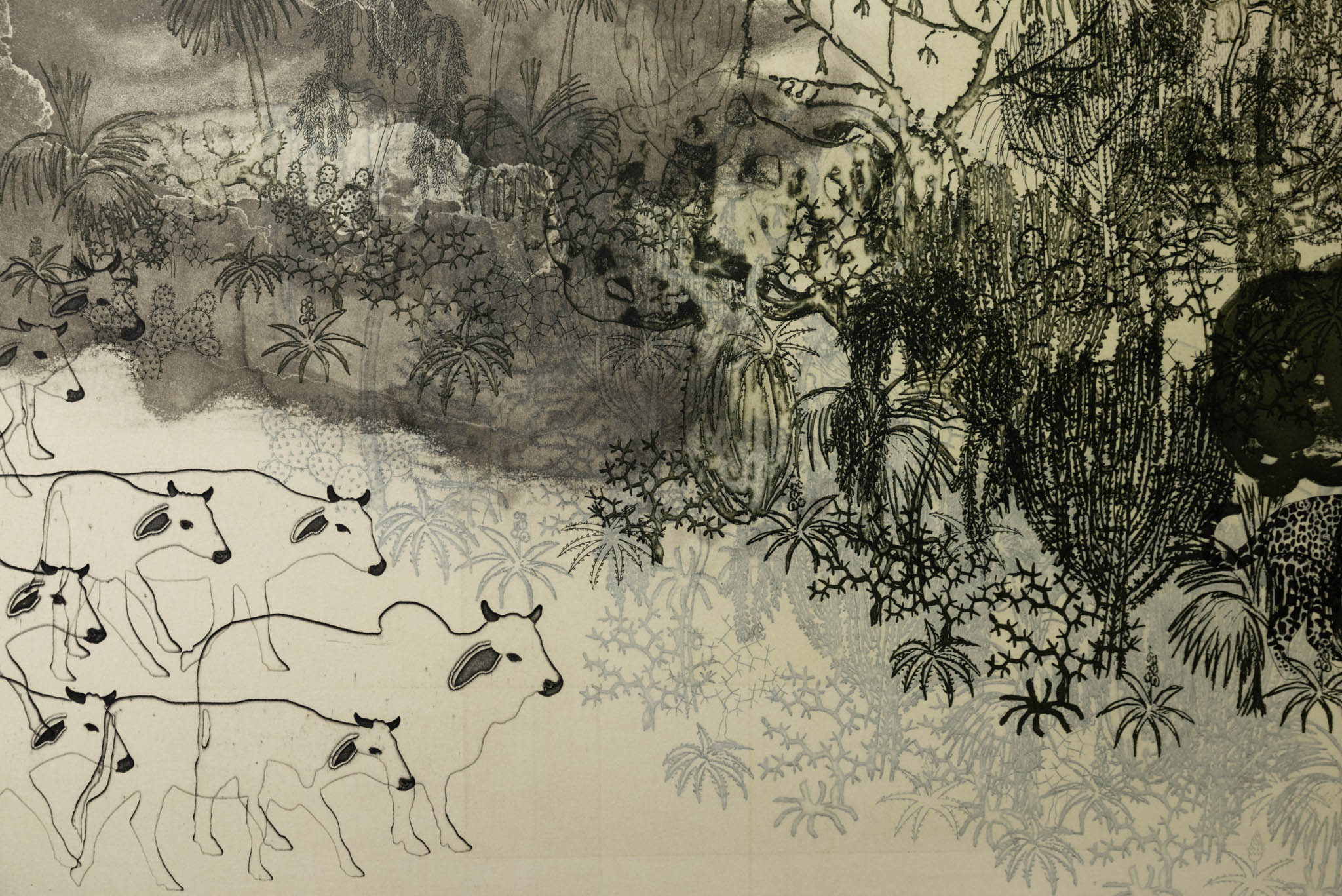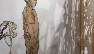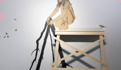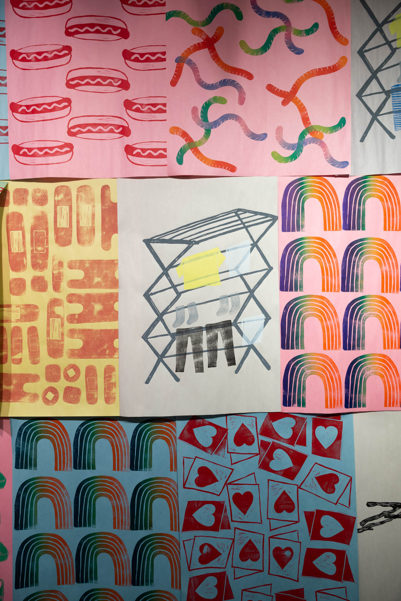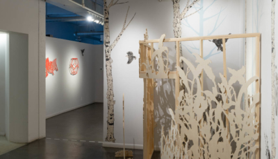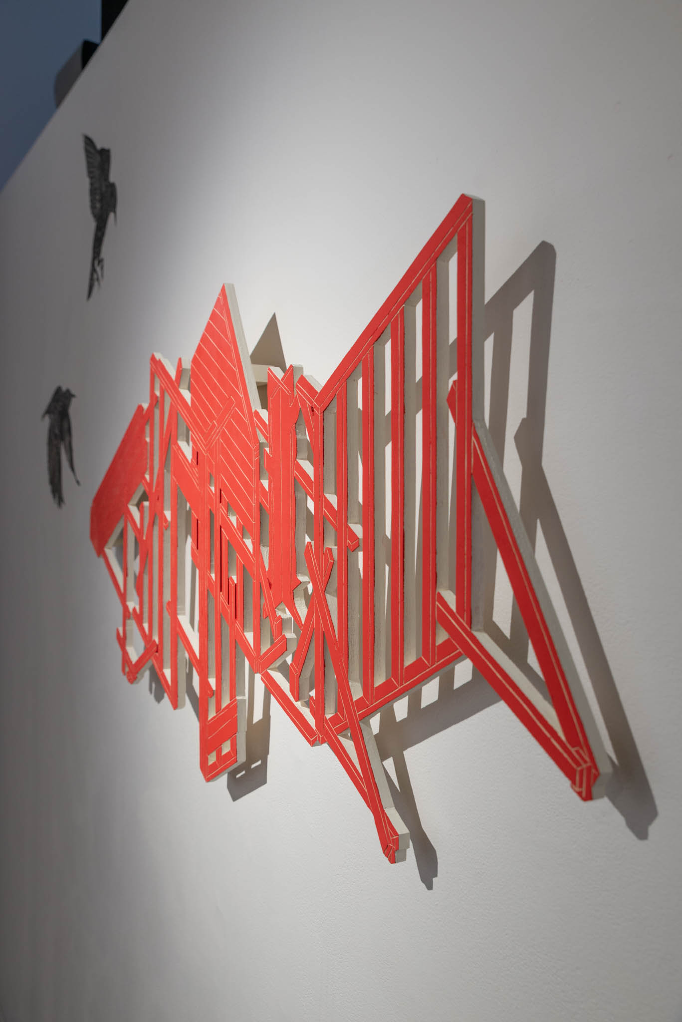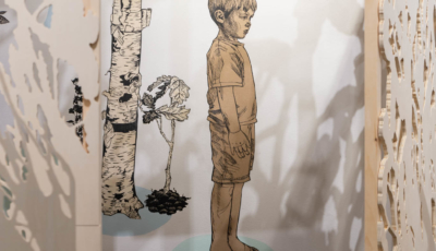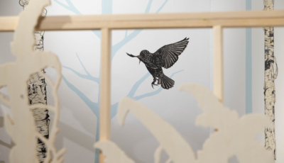The exhibition takes an immersive form, with life-sized prints and painted imagery as mural components, and structural imagery emerging from the walls like a pop-up book at human-scale. Rich with layers and detail, Keeping Time invites viewers to experience the work in the way they may have become lost in books or illustrations as a child.