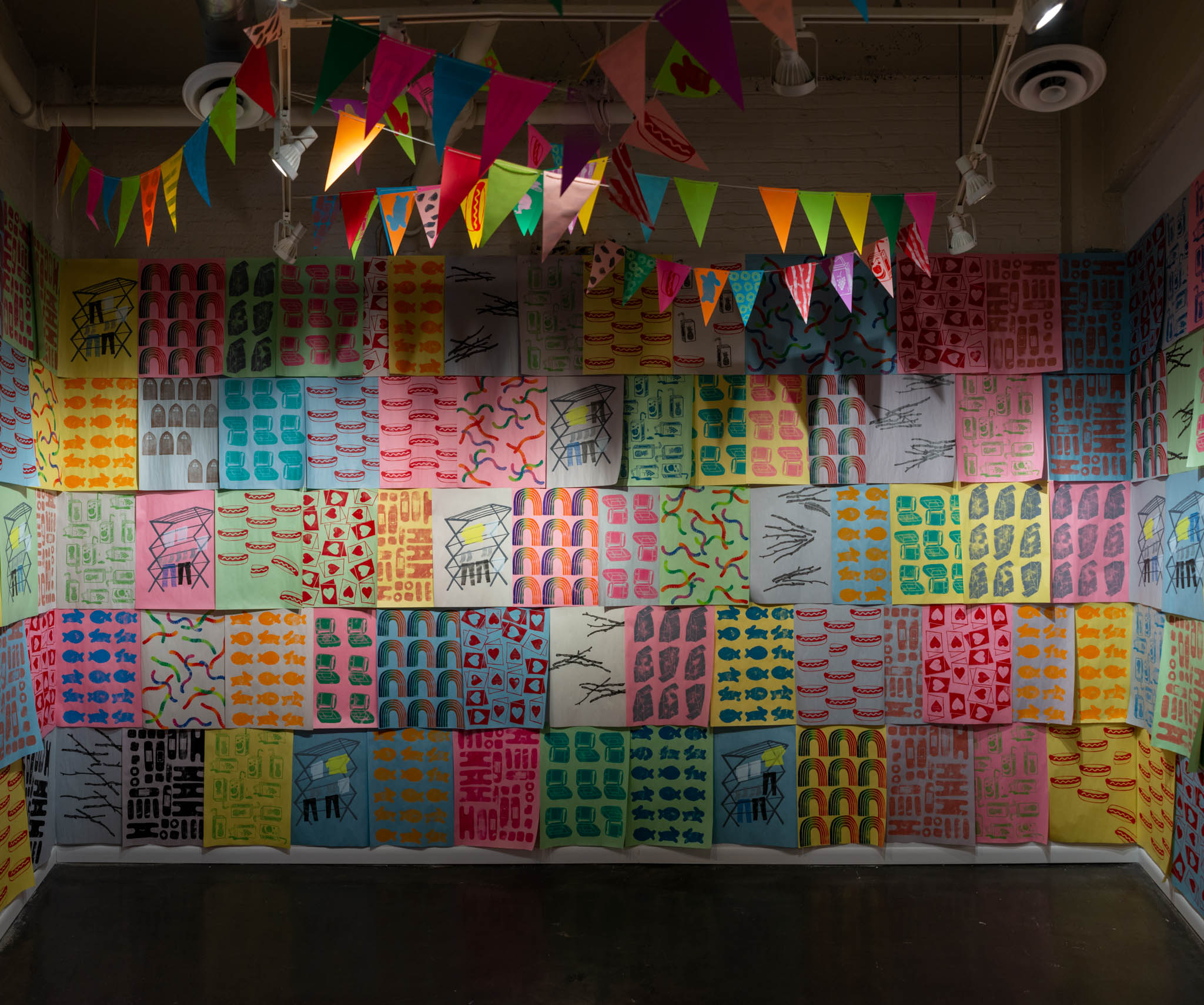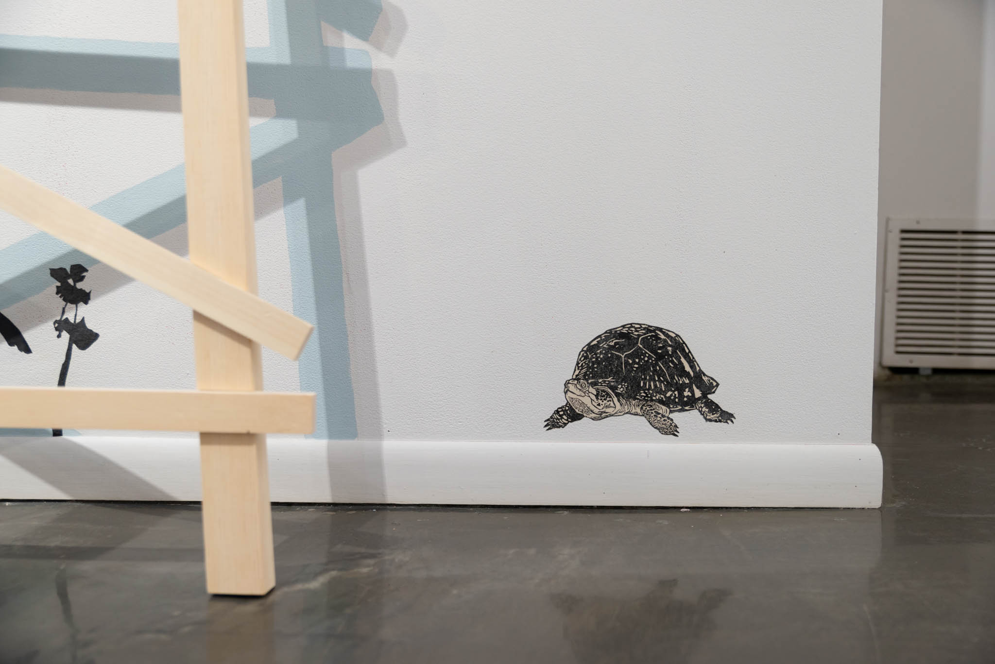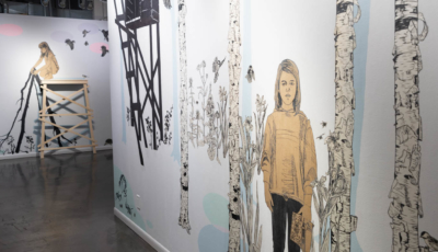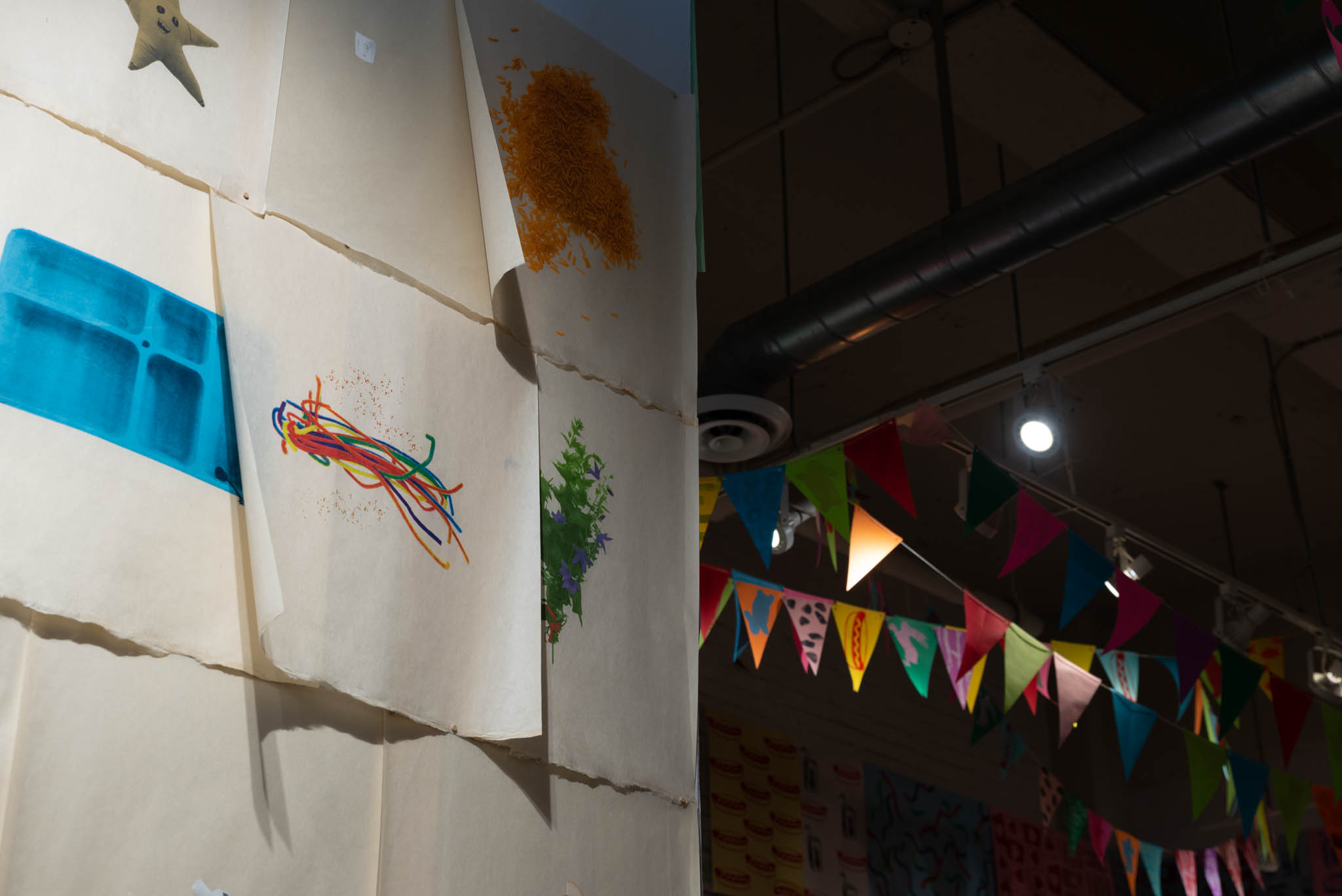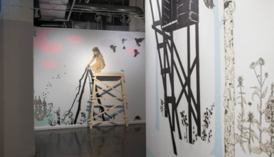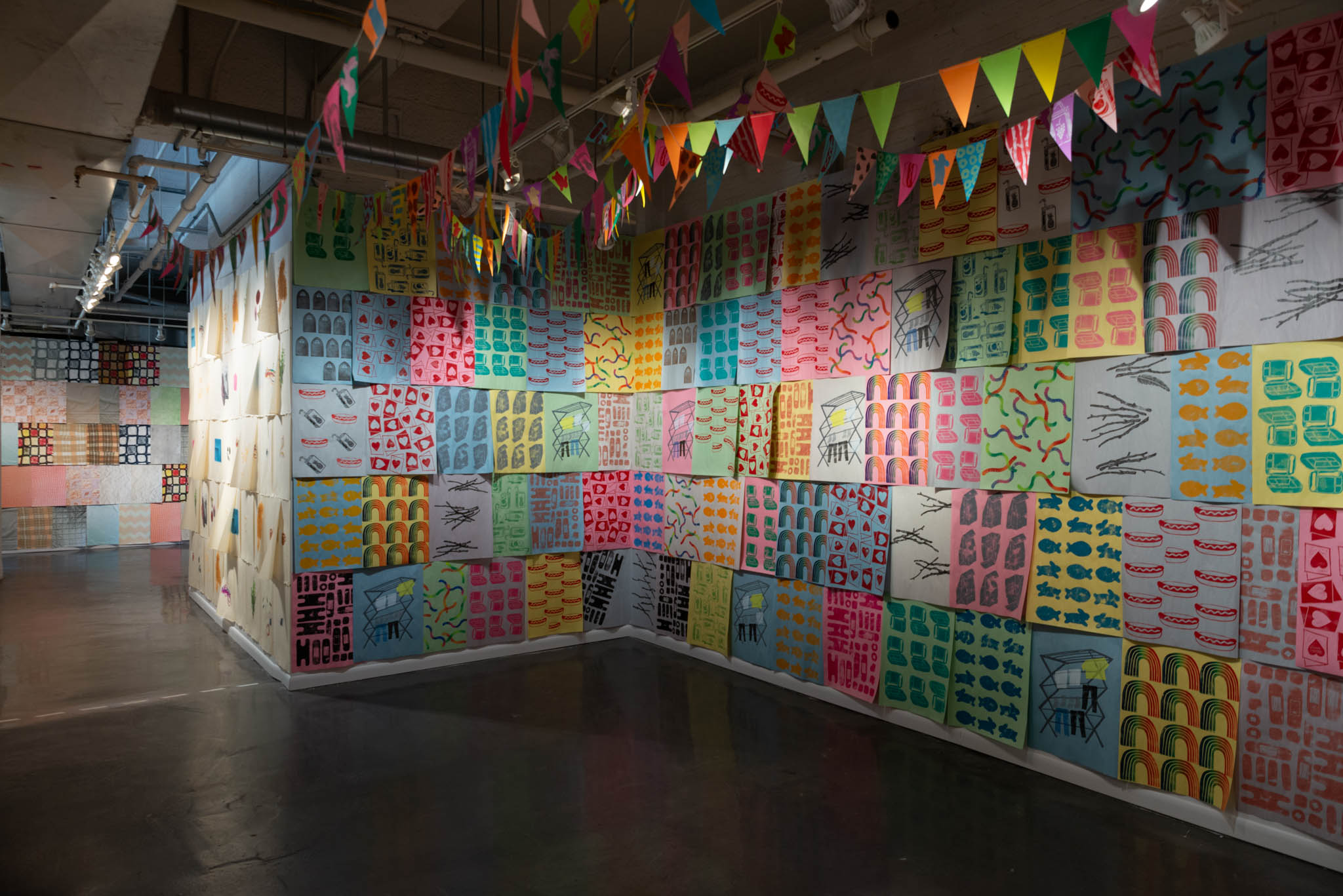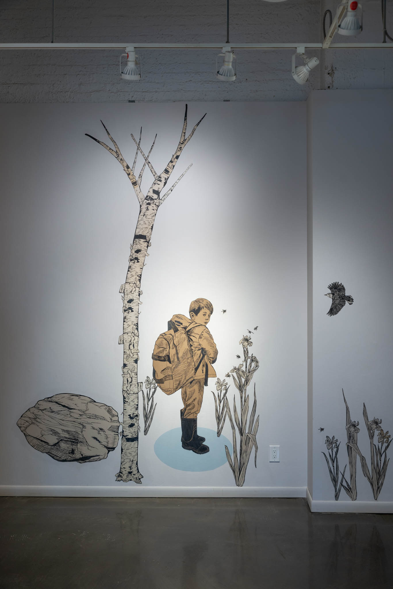 In the large-scale print-based murals of Keeping Time, narrative imagery referencing archetypes from children’s literature captures the peculiar experience of time as a state of simultaneous expansion and contraction.