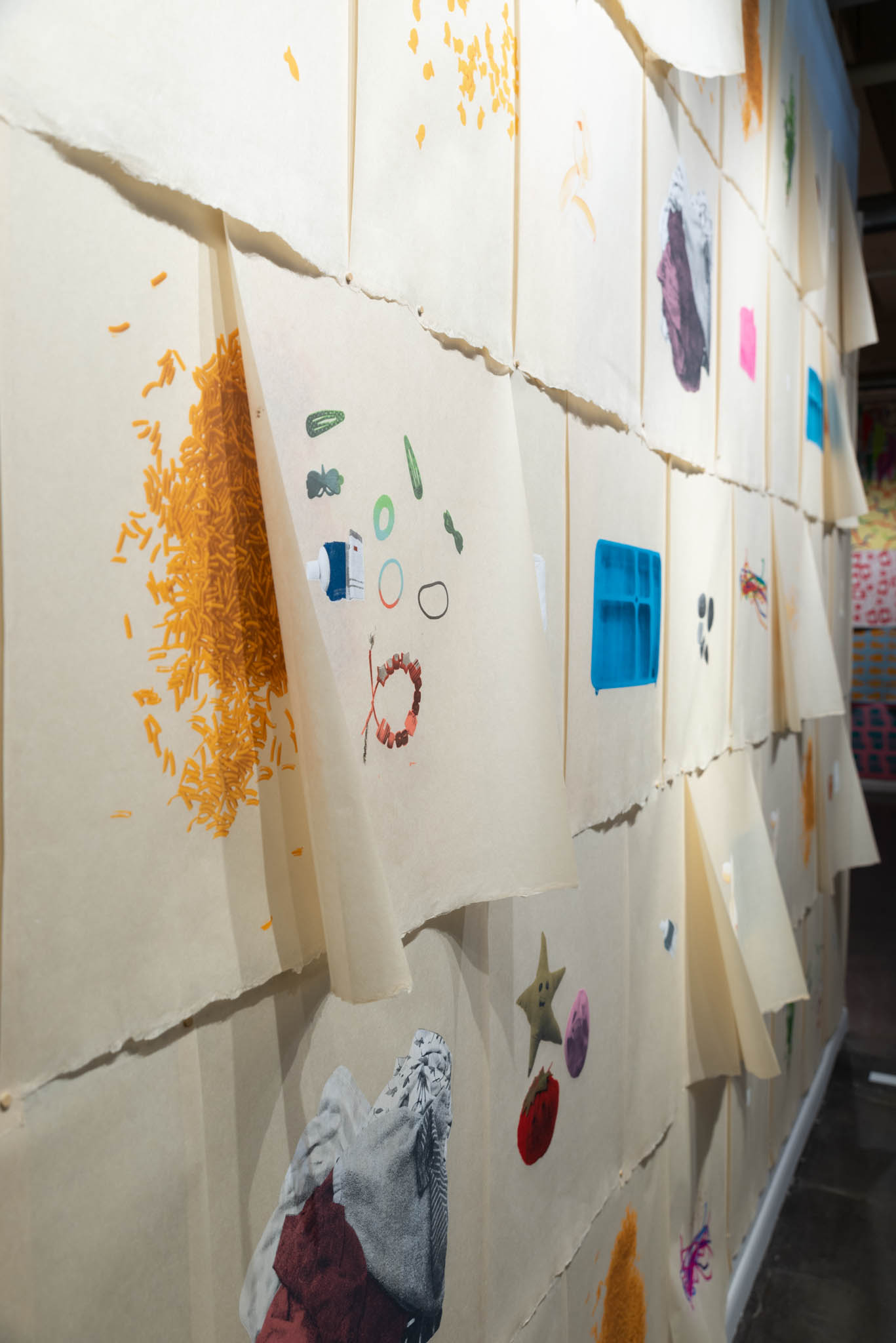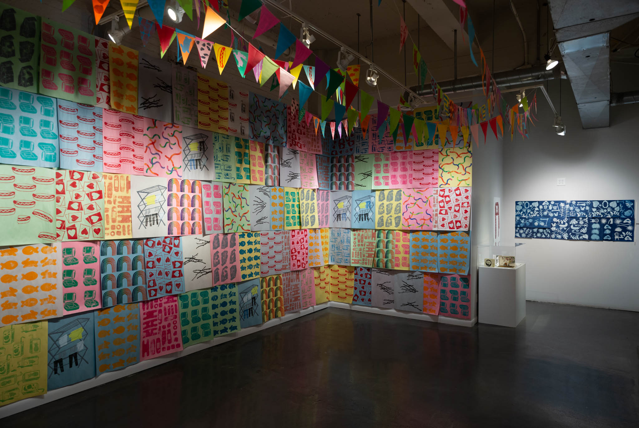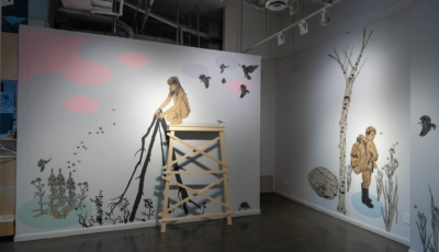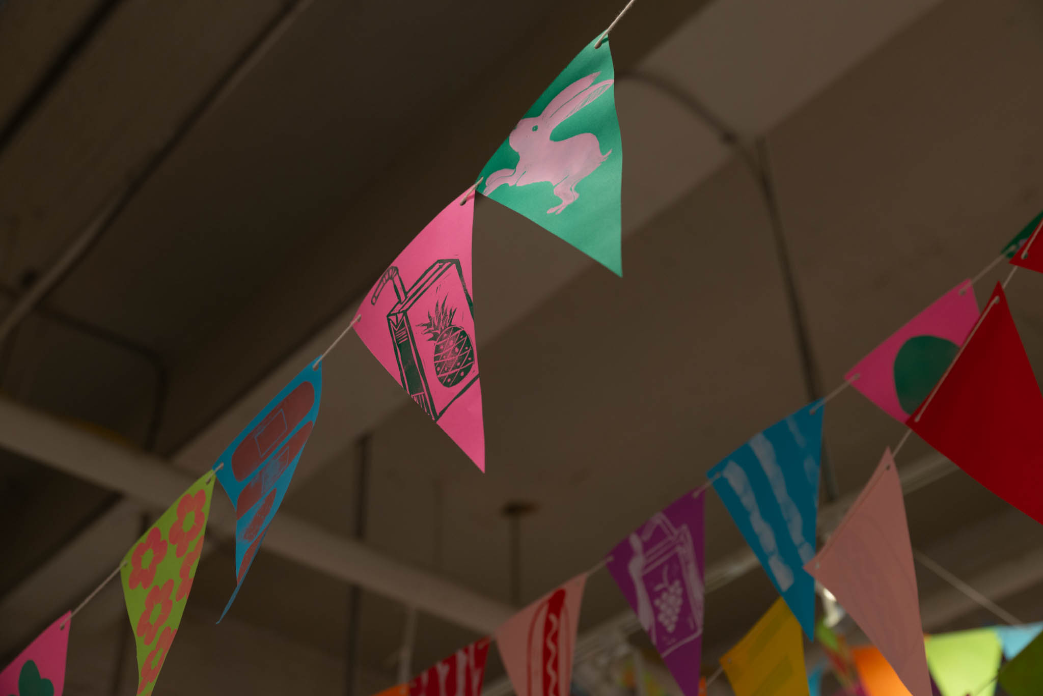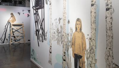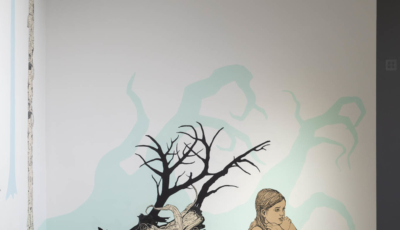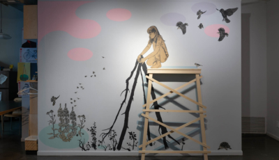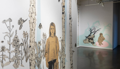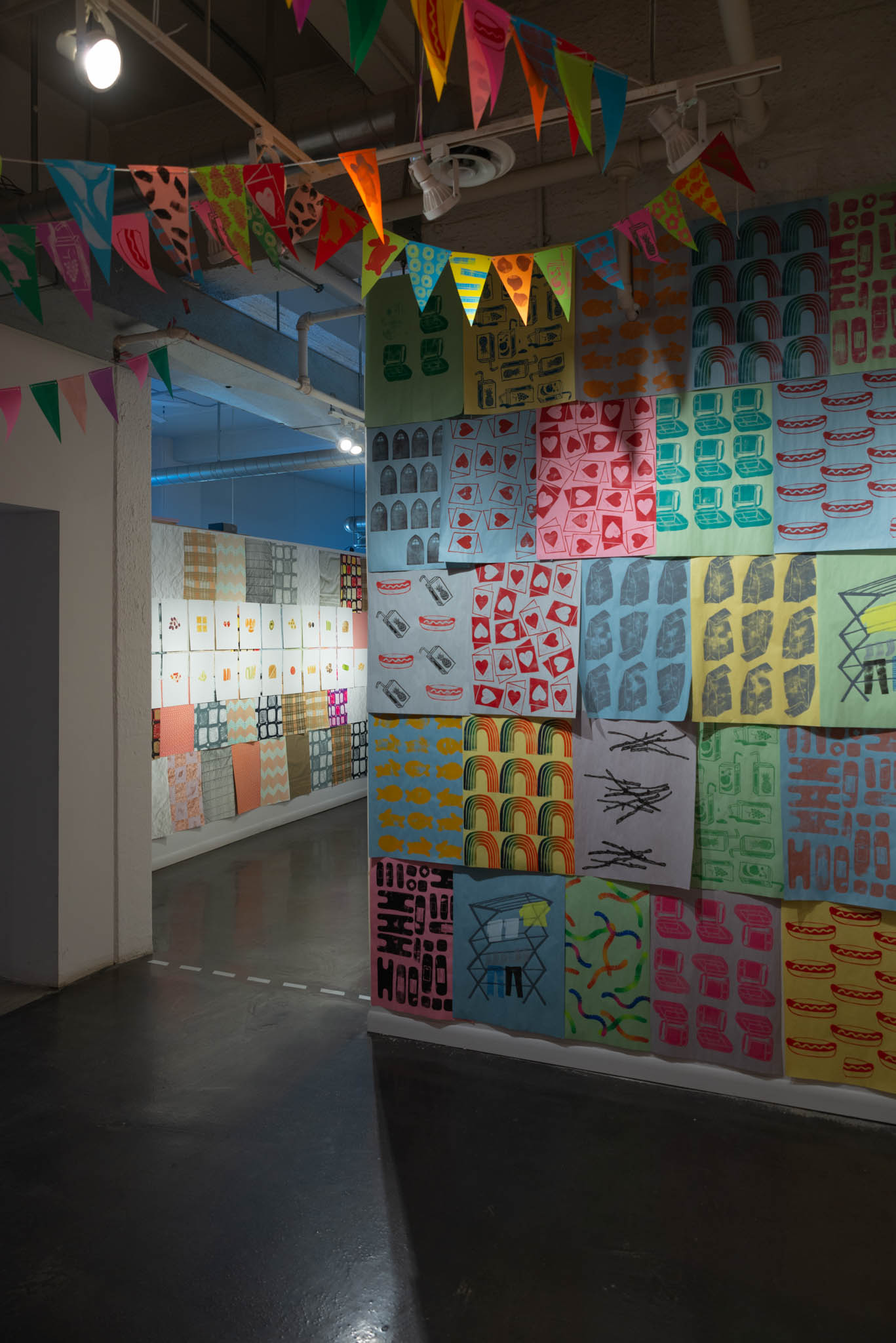 In the large-scale print-based murals of Keeping Time, narrative imagery referencing archetypes from children’s literature captures the peculiar experience of time as a state of simultaneous expansion and contraction.