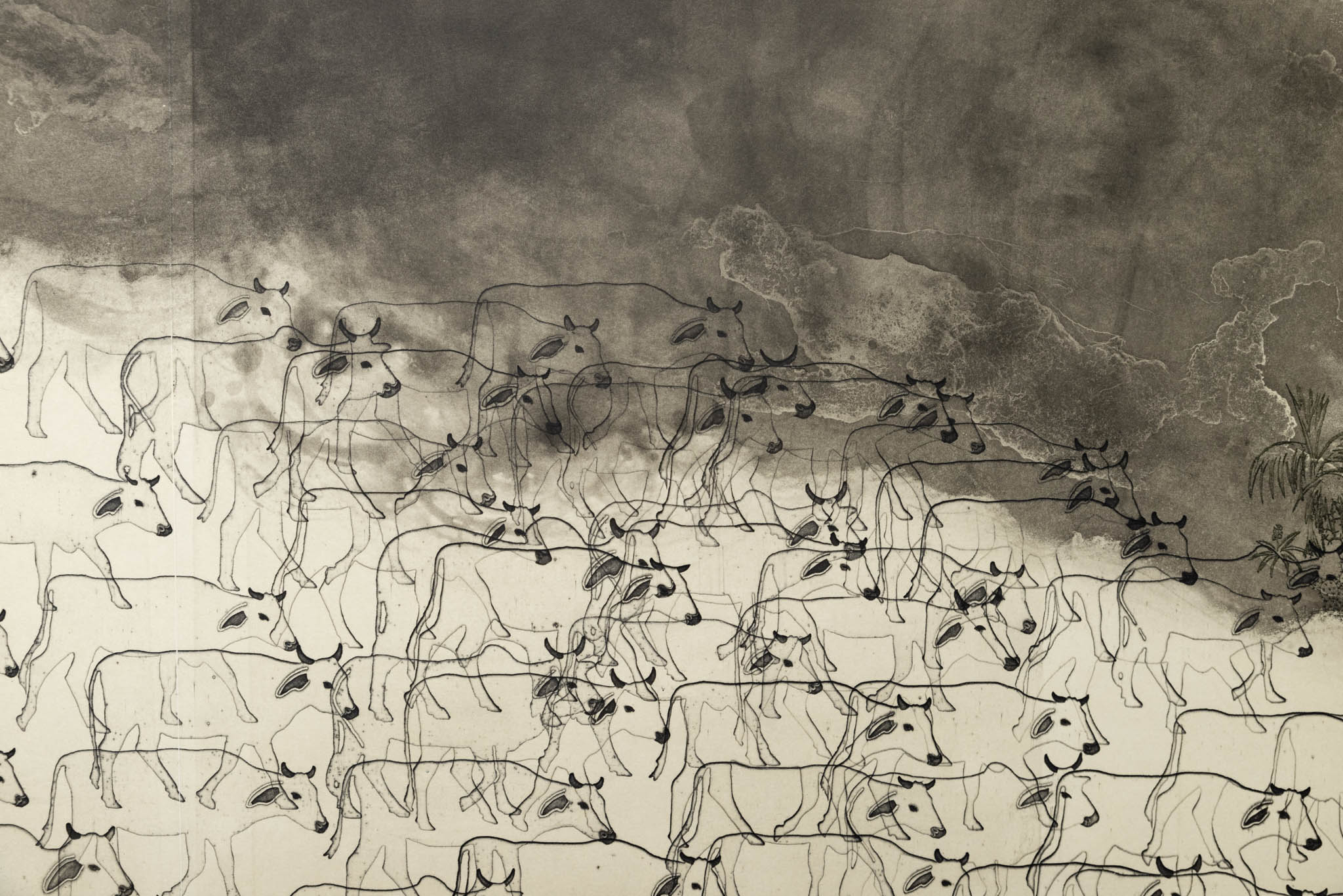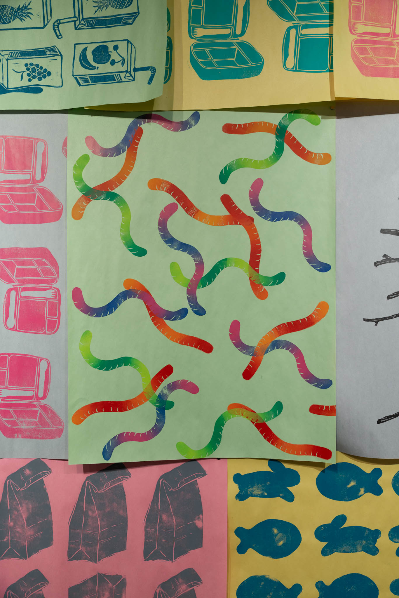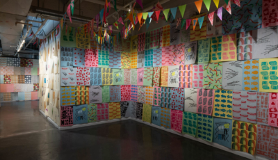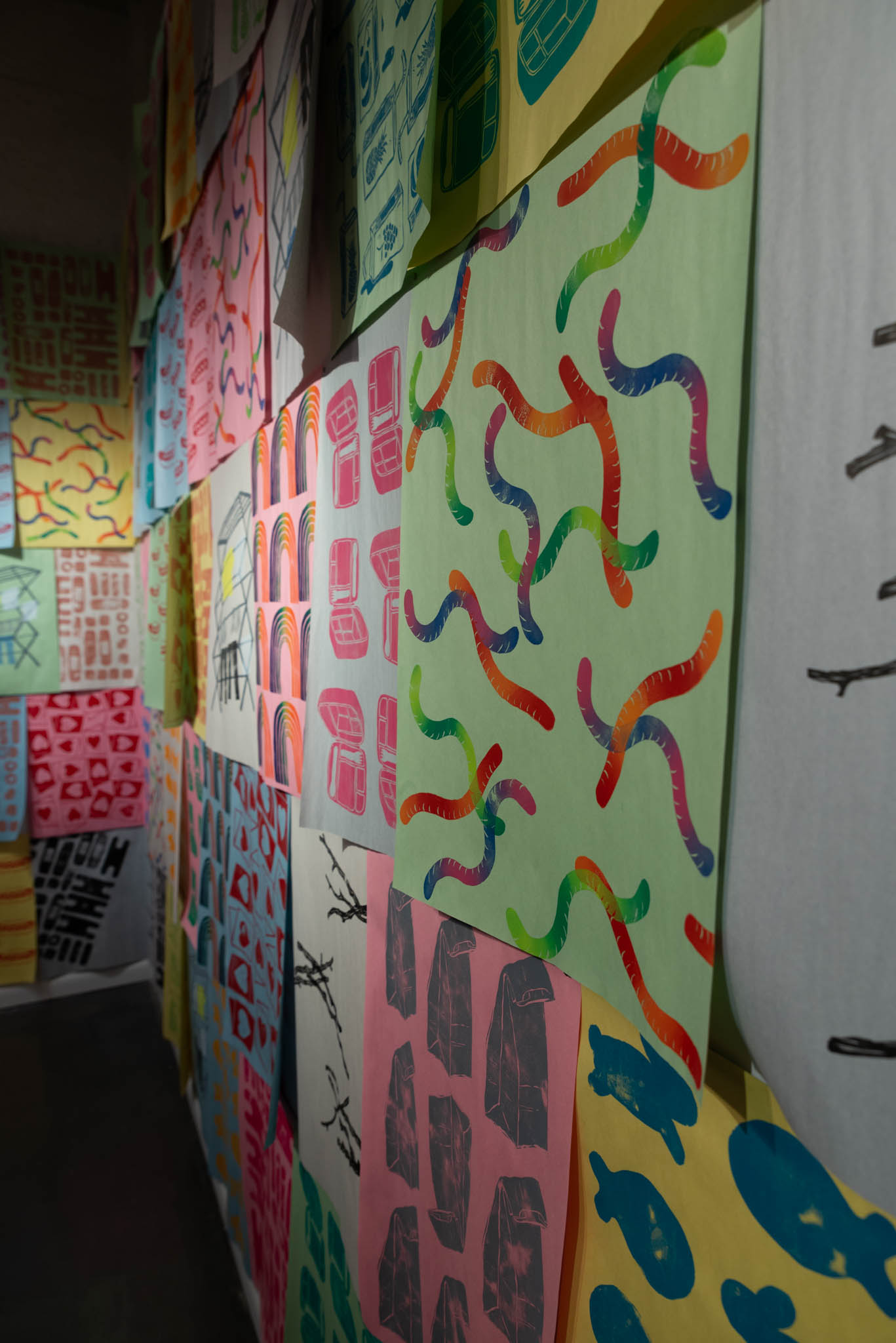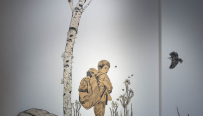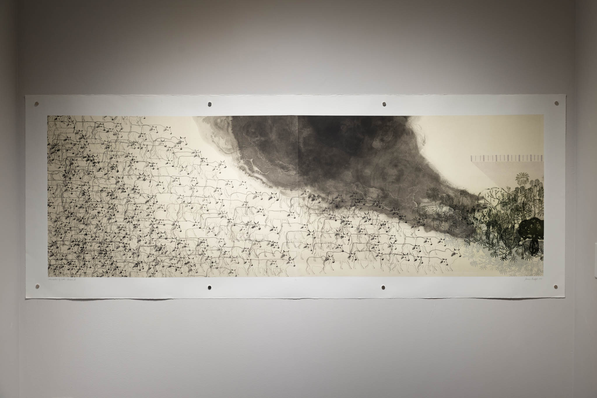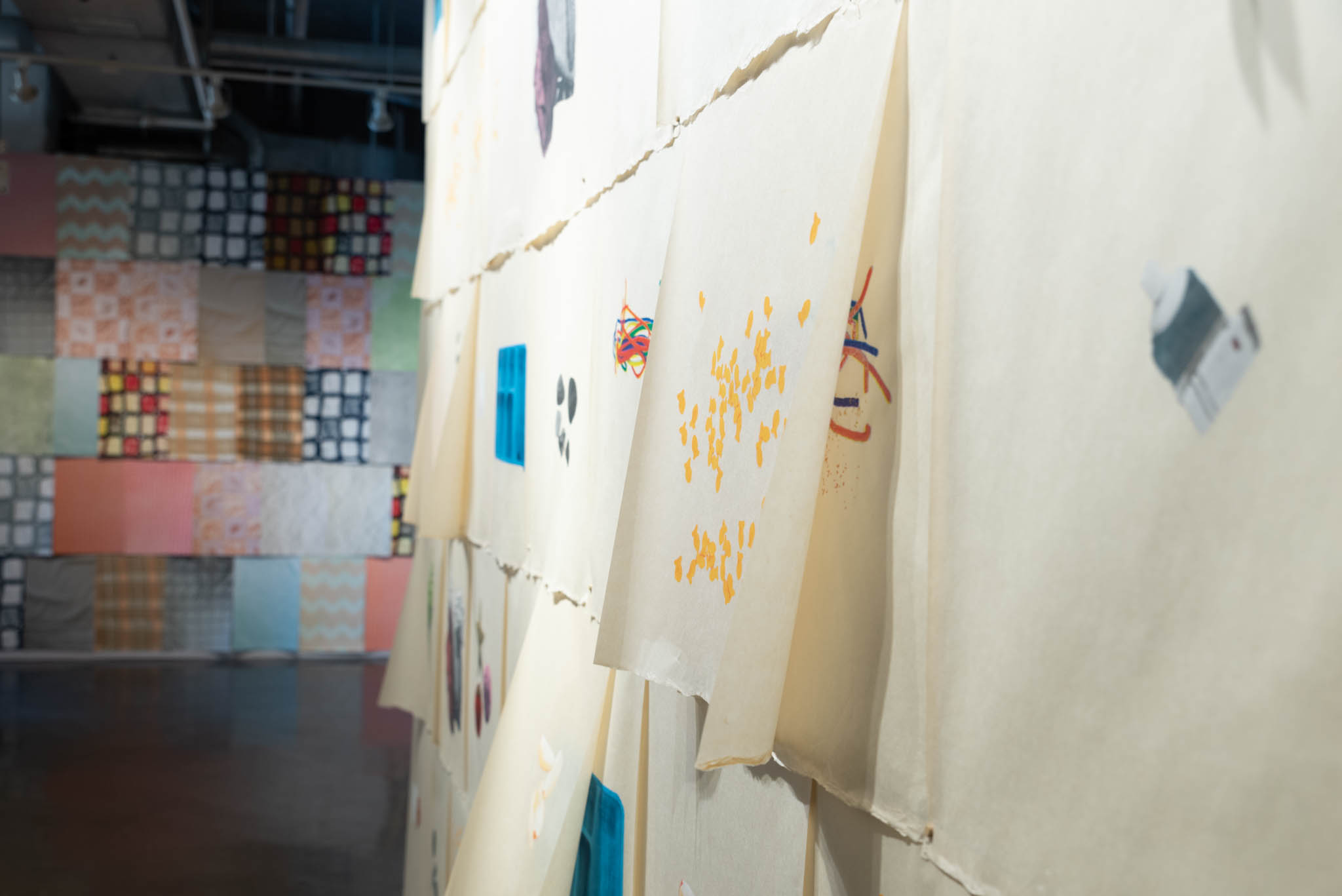 In the large-scale print-based murals of Keeping Time, narrative imagery referencing archetypes from children’s literature captures the peculiar experience of time as a state of simultaneous expansion and contraction.
