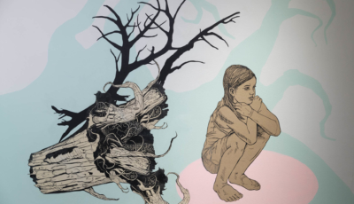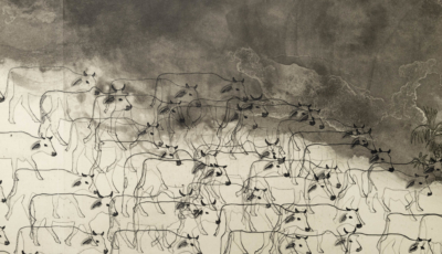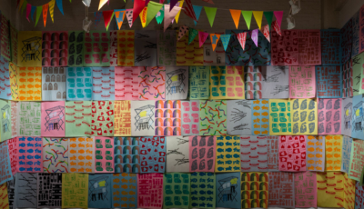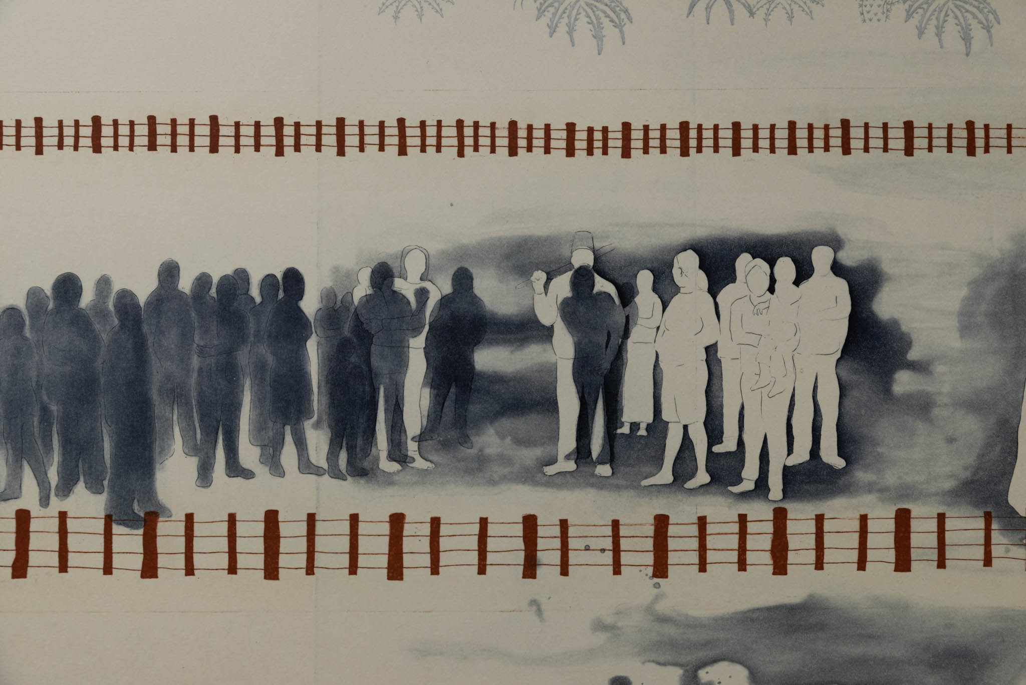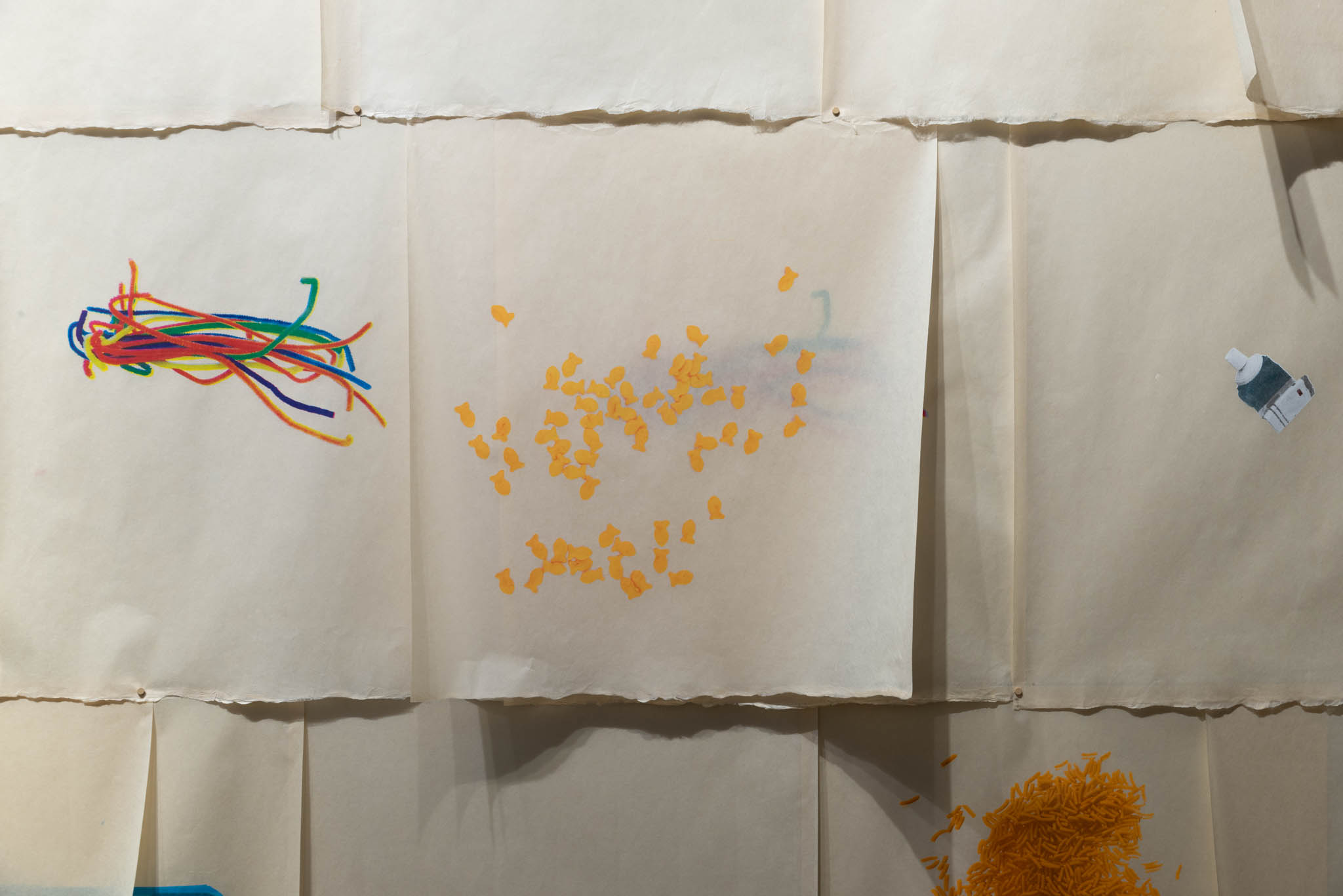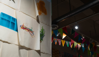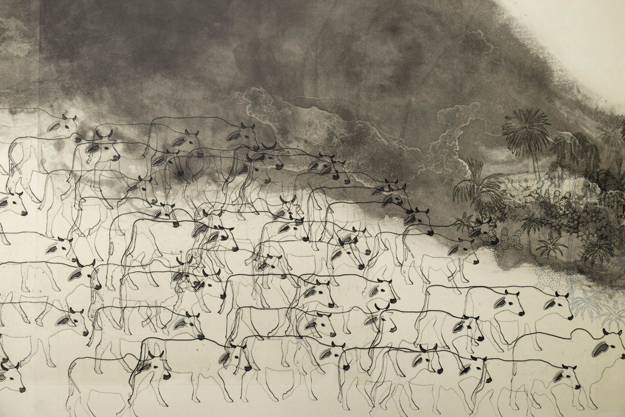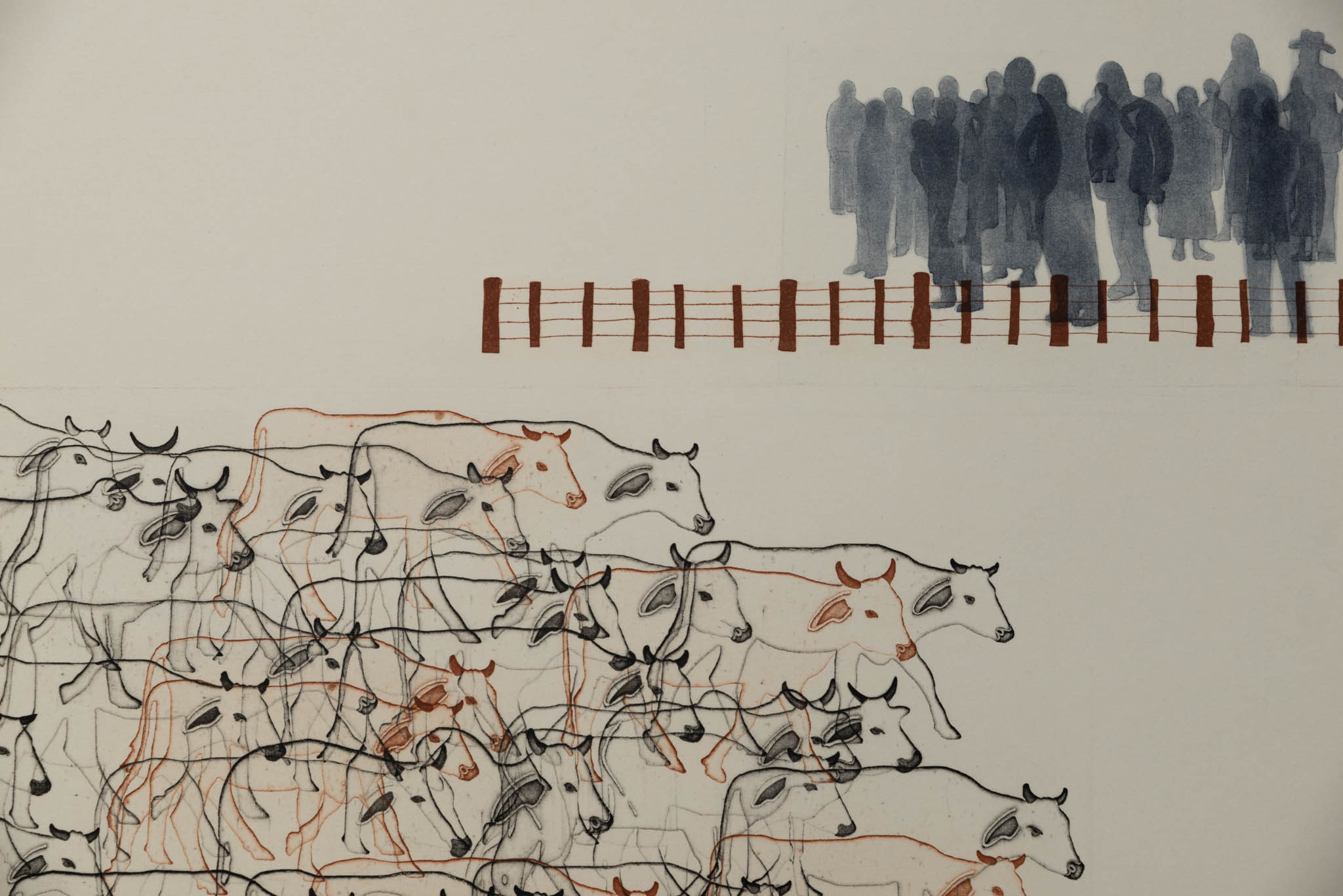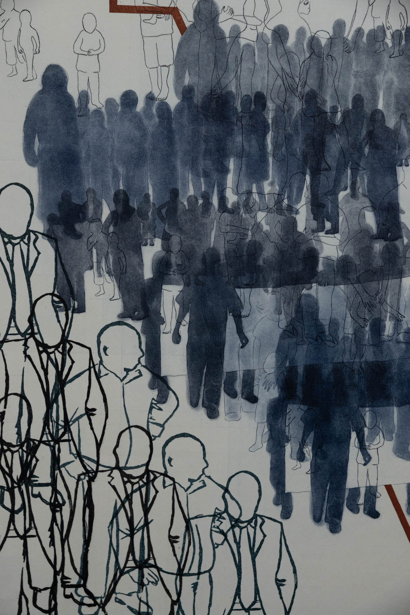 In the large-scale print-based murals of Keeping Time, narrative imagery referencing archetypes from children’s literature captures the peculiar experience of time as a state of simultaneous expansion and contraction.