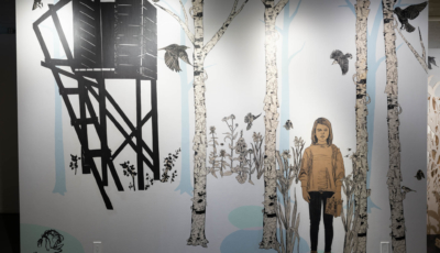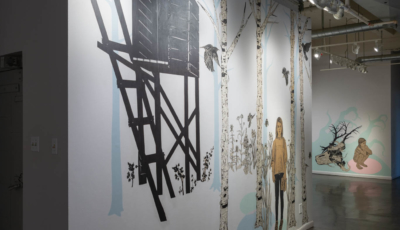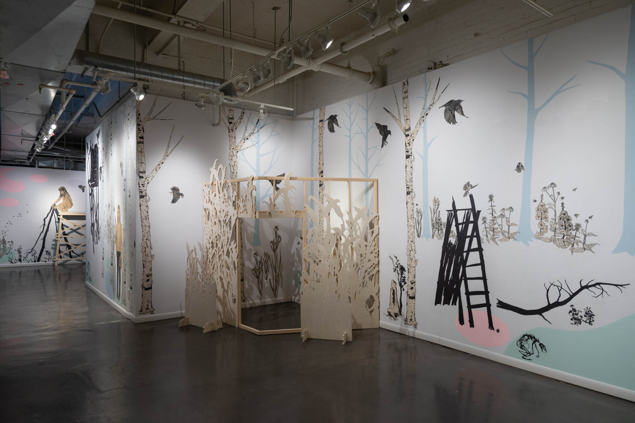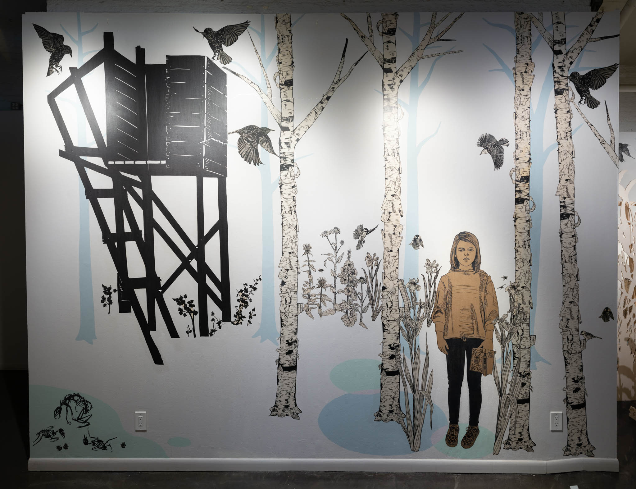 Laura Peturson is an artist based in northern Ontario with a practice situated in printmaking, drawing, and painting. Her large-scale print-based installations comprised of woodcut, linocut, and papercut wheatpastes have been presented in solo exhibitions at Alberta Printmakers Gallery (Calgary), Station Gallery (Whitby), and Galerie Atelier Circulaire (Montréal). In addition to exhibiting widely in Canada, and international venues, Peturson has created murals and public art projects in several Ontario cities, including Sudbury, North Bay and Port Burwell. Her work is narrative and figurative, focusing on the lives of girls and women, and drawing upon traditions from the Golden Age of Illustration and engaging with references from literature and visual art from the 19th and early 20th centuries.