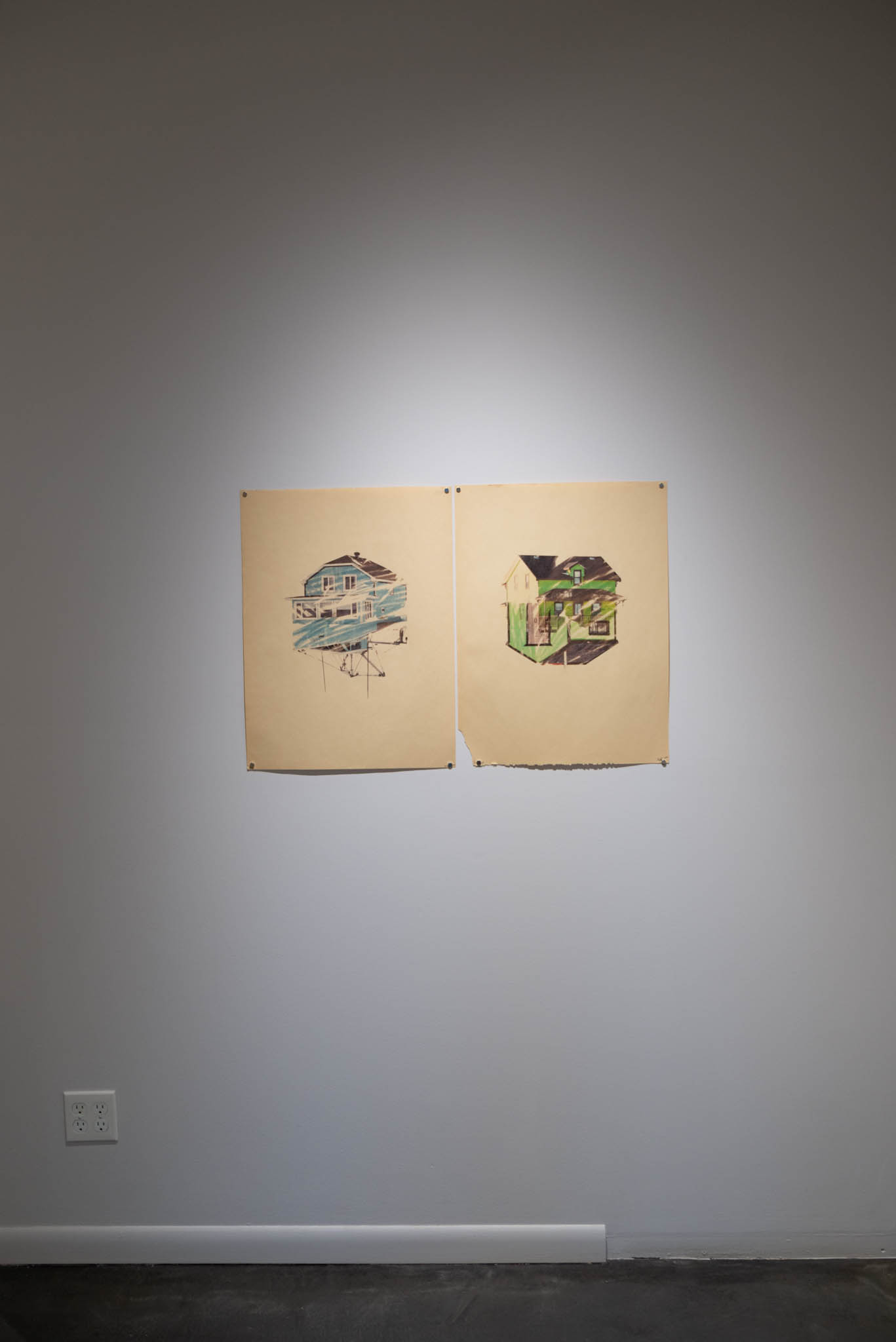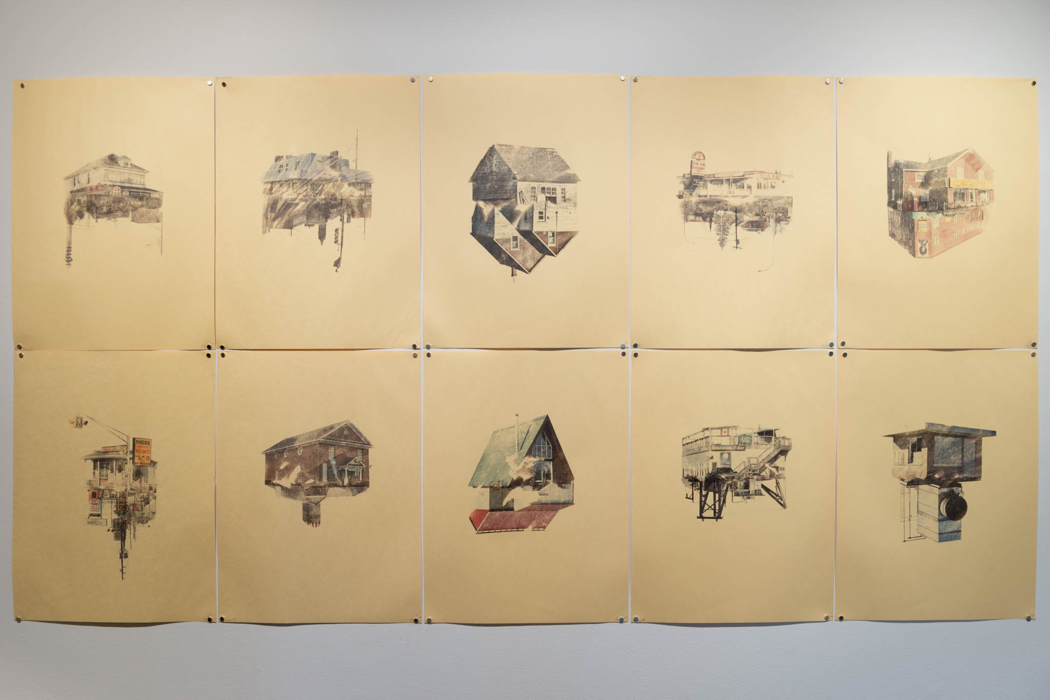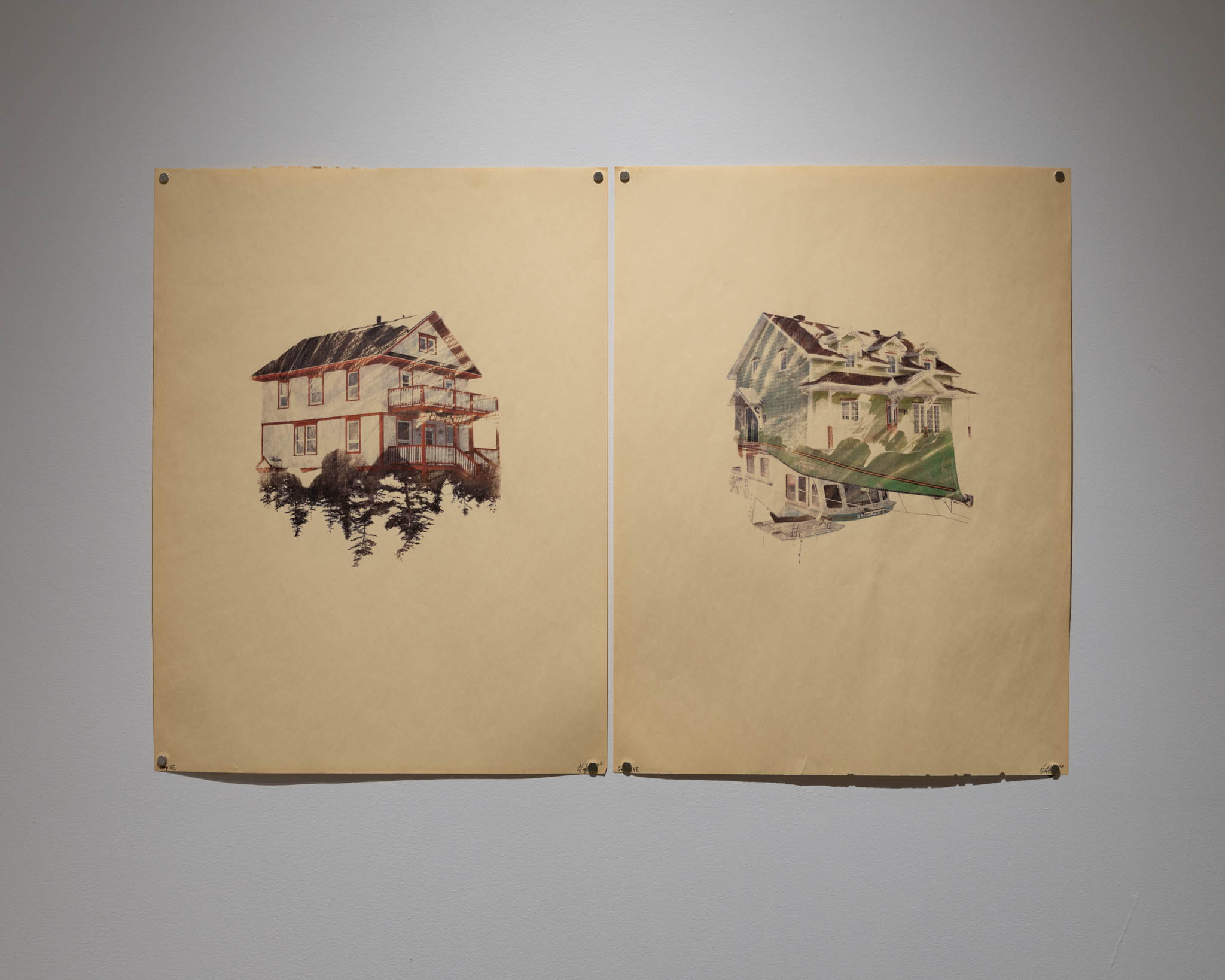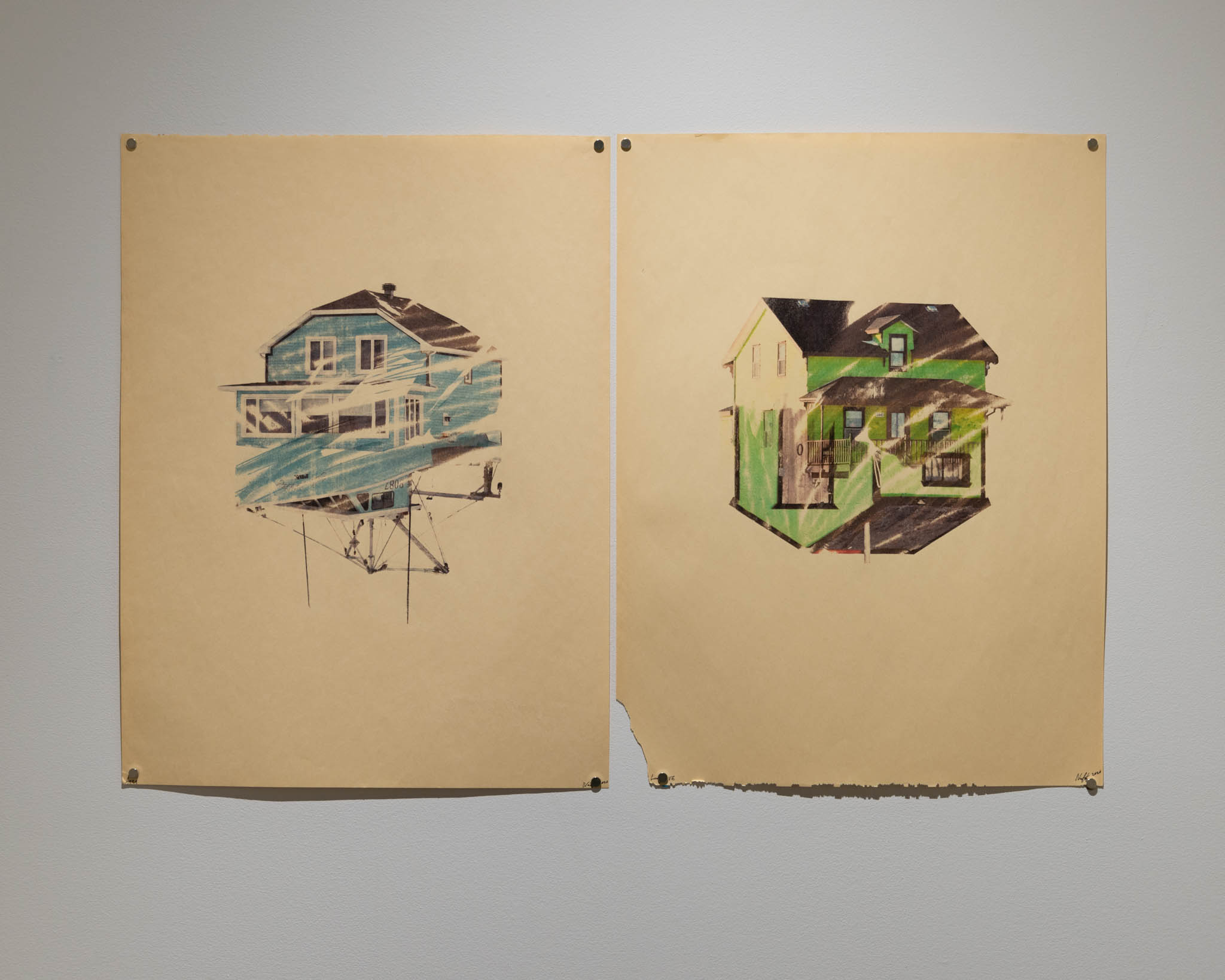 In early 2020, before the world had its collective breakdown, Nat Cann traveled to the Magdalen Islands of Quebec for a two week residency wherein a series of work was fashioned regarding the haunting of the isles, a place of things well painted. The intention with this residency was to find a spirit, that which draws people to places of expulsion, cold waters and winds. In the end, it was a mixture of everything sprinkled in francophone cultural via the Acadian expulsion, and how said migration has claimed this land; particularly, the many lush houses of untameable colors. Houses not painted to match their wild surroundings, rather, to emulate them. And this idea extends to (almost) every corner of the isles. From their boats to the dog’s house, everything has a style all its own, a culture formed and finalized. It was this uncovering of an archipelago’s haunting that sparked an expanding career of residencies and print.