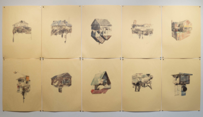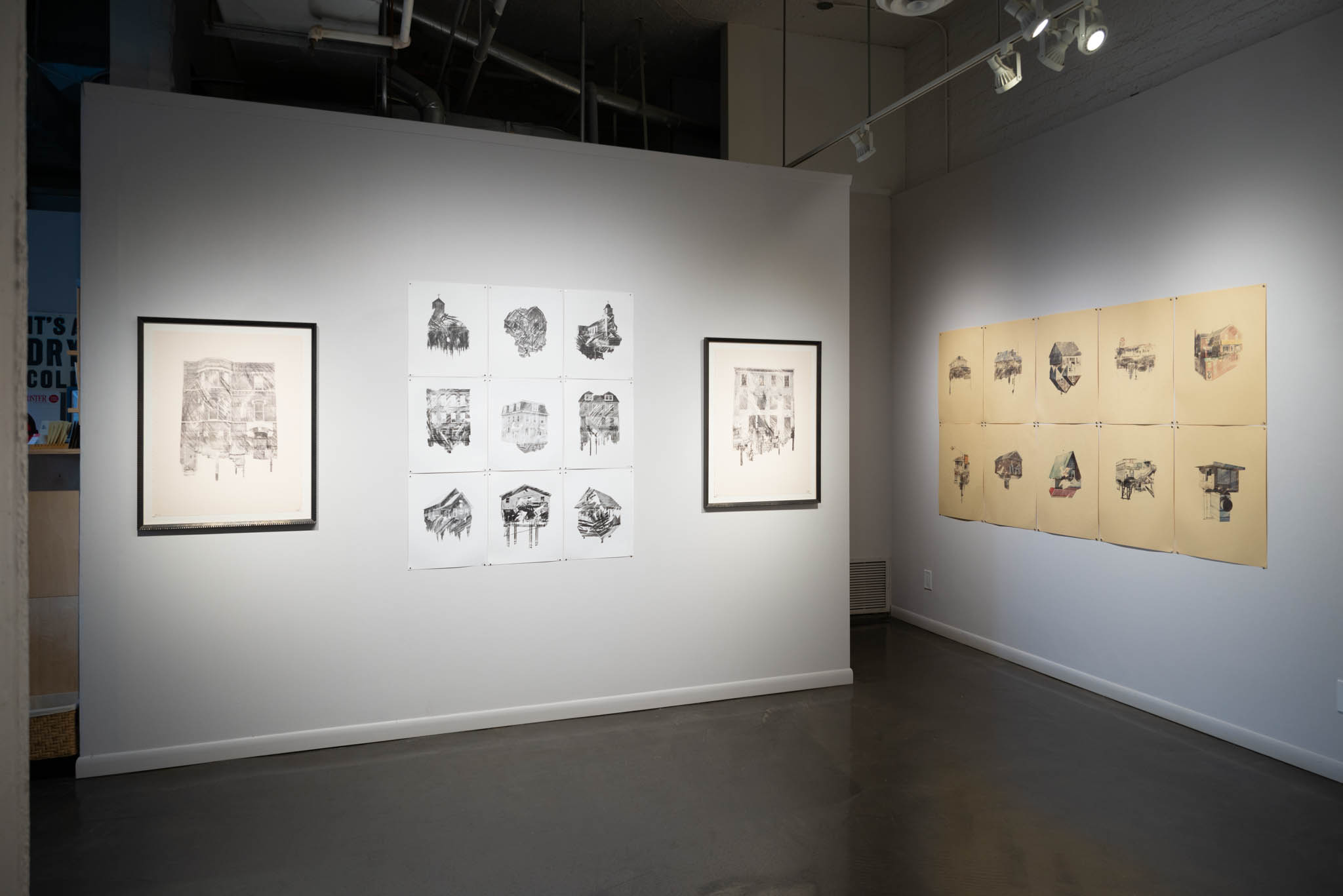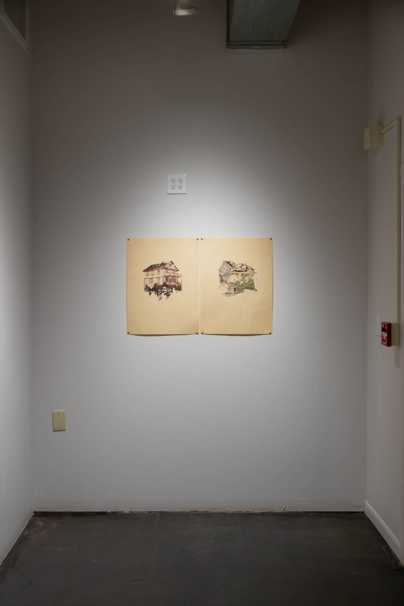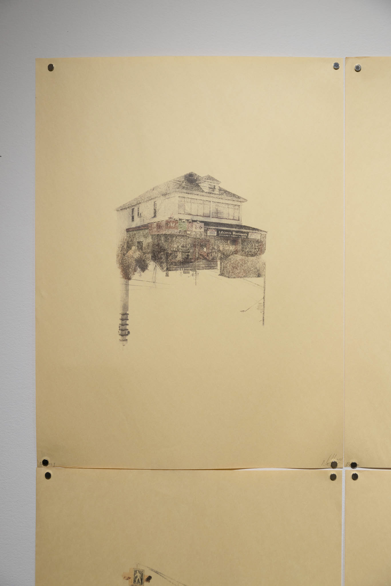 In early 2020, before the world had its collective breakdown, Nat Cann traveled to the Magdalen Islands of Quebec for a two week residency wherein a series of work was fashioned regarding the haunting of the isles, a place of things well painted. The intention with this residency was to find a spirit, that which draws people to places of expulsion, cold waters and winds. In the end, it was a mixture of everything sprinkled in francophone cultural via the Acadian expulsion, and how said migration has claimed this land; particularly, the many lush houses of untameable colors. Houses not painted to match their wild surroundings, rather, to emulate them. And this idea extends to (almost) every corner of the isles. From their boats to the dog’s house, everything has a style all its own, a culture formed and finalized. It was this uncovering of an archipelago’s haunting that sparked an expanding career of residencies and print.