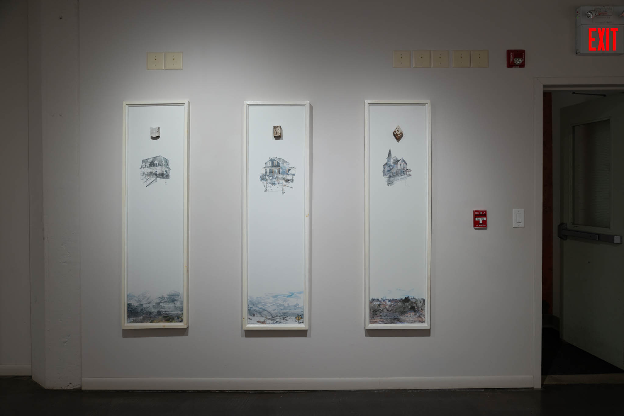 Well Painted Places, the Magdalen visitation, was co-funded through ArtsNB’s Career Development AiR grant and swiftly followed by Adrift, a response to the withering coasts of the Atlantic; and Stelae & Stoic, two printed installations inquiring into places whose settler history/industrial narrative has been either upheld or repurposed for the needs of new industries and leisure. These works lead to more residencies in relation to the original Magdalen visitation, and so on and so on. What has accumulated over the past few years has been a collection of residency works wherein, and in chagrin to the pandemic, a similar methodology has been told, visitations to multiple different places so as to document and uncover what haunts said location. Be it Calgary’s coffee culture fuelling the fuel industry or Port Union, Newfoundland’s simple existence as a collection of lonely red boxes, every town has a tale to tell.