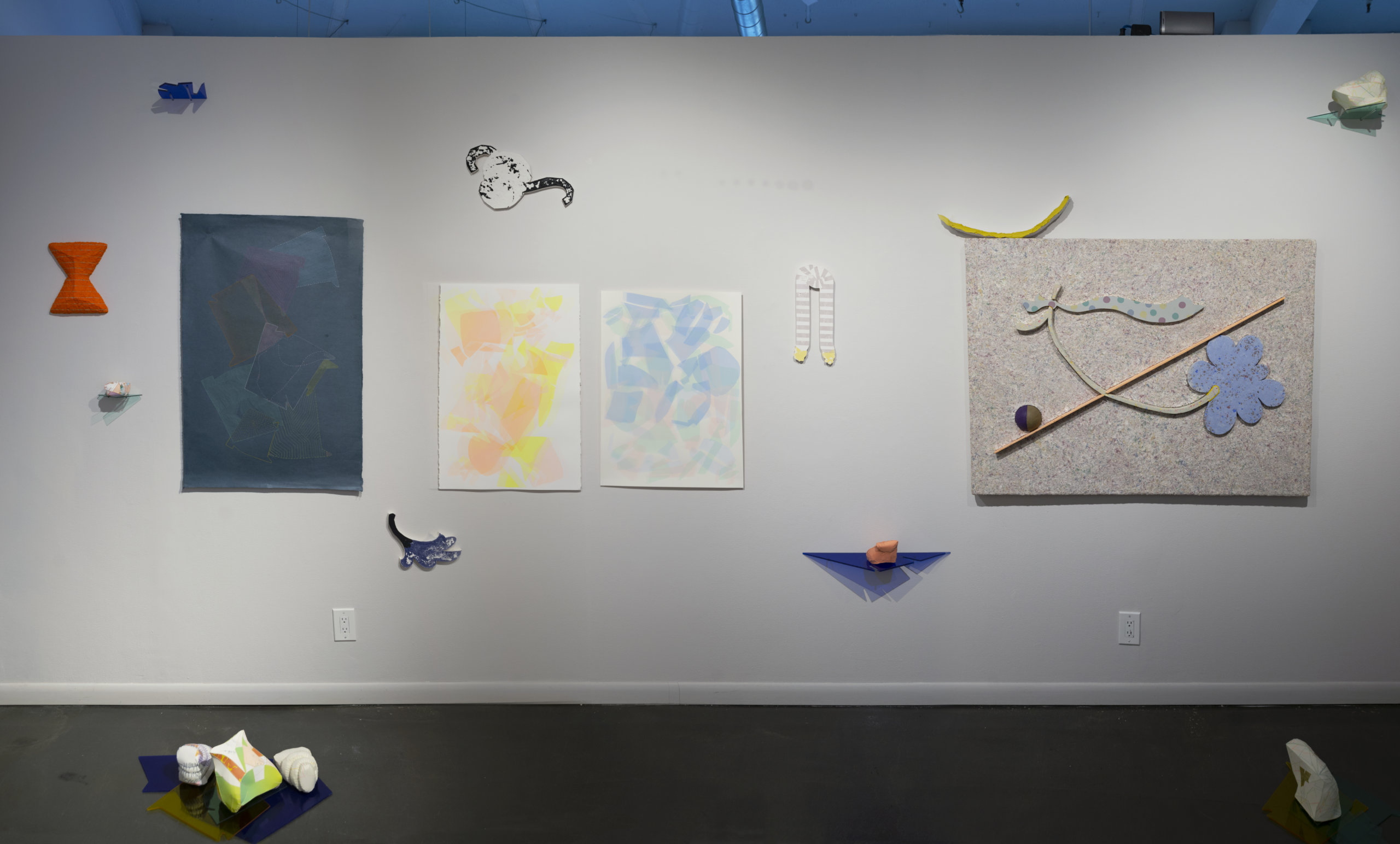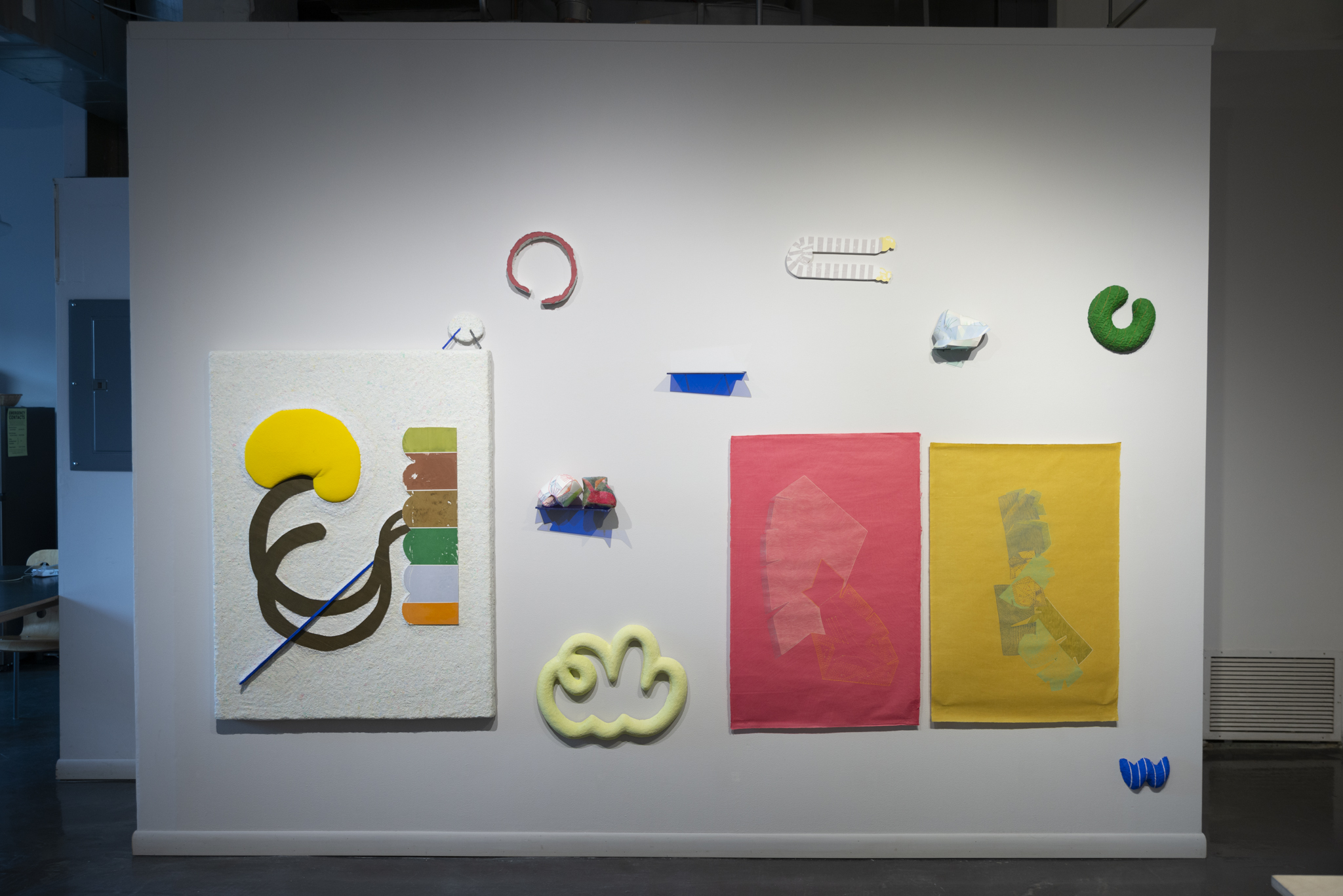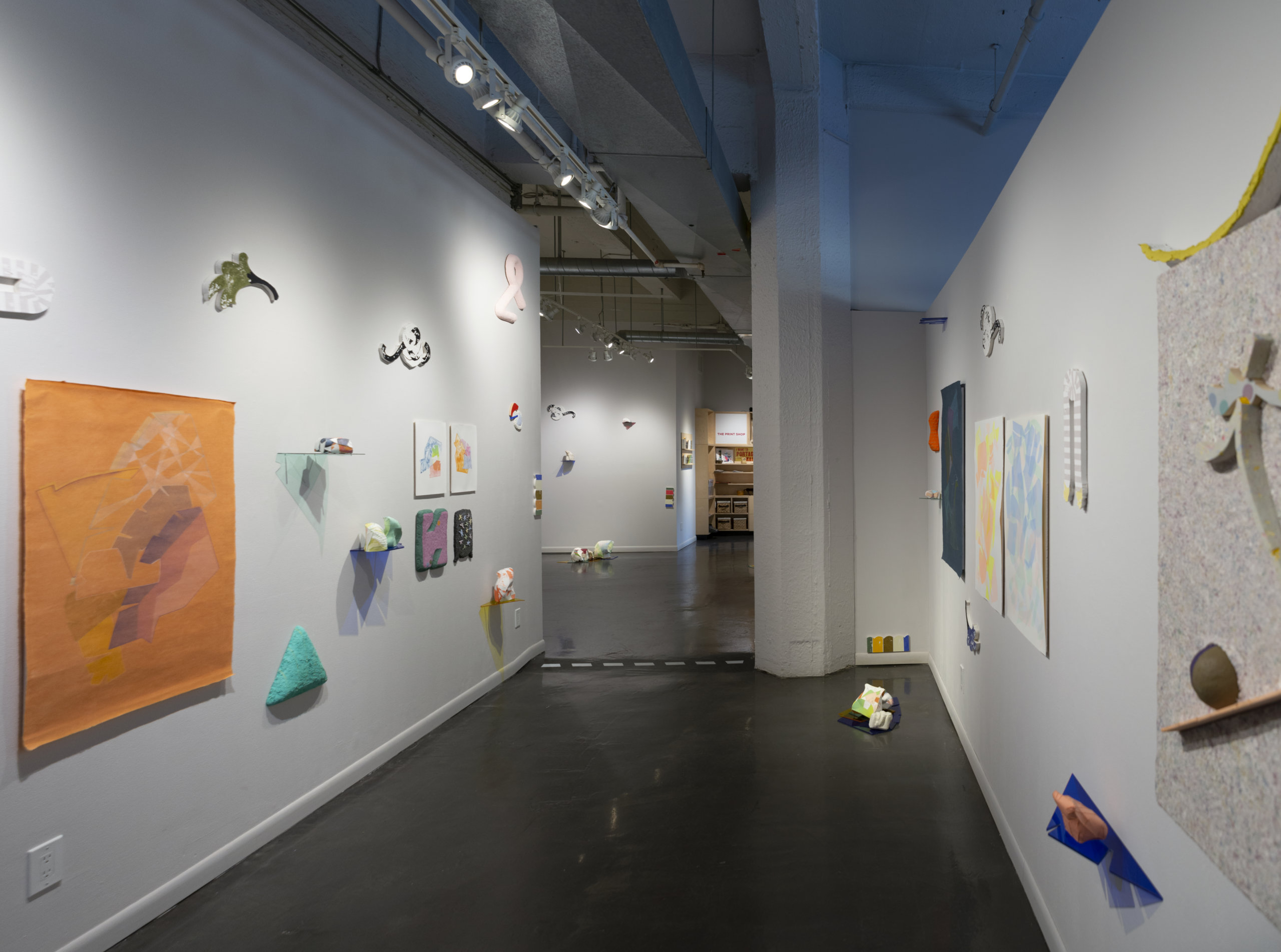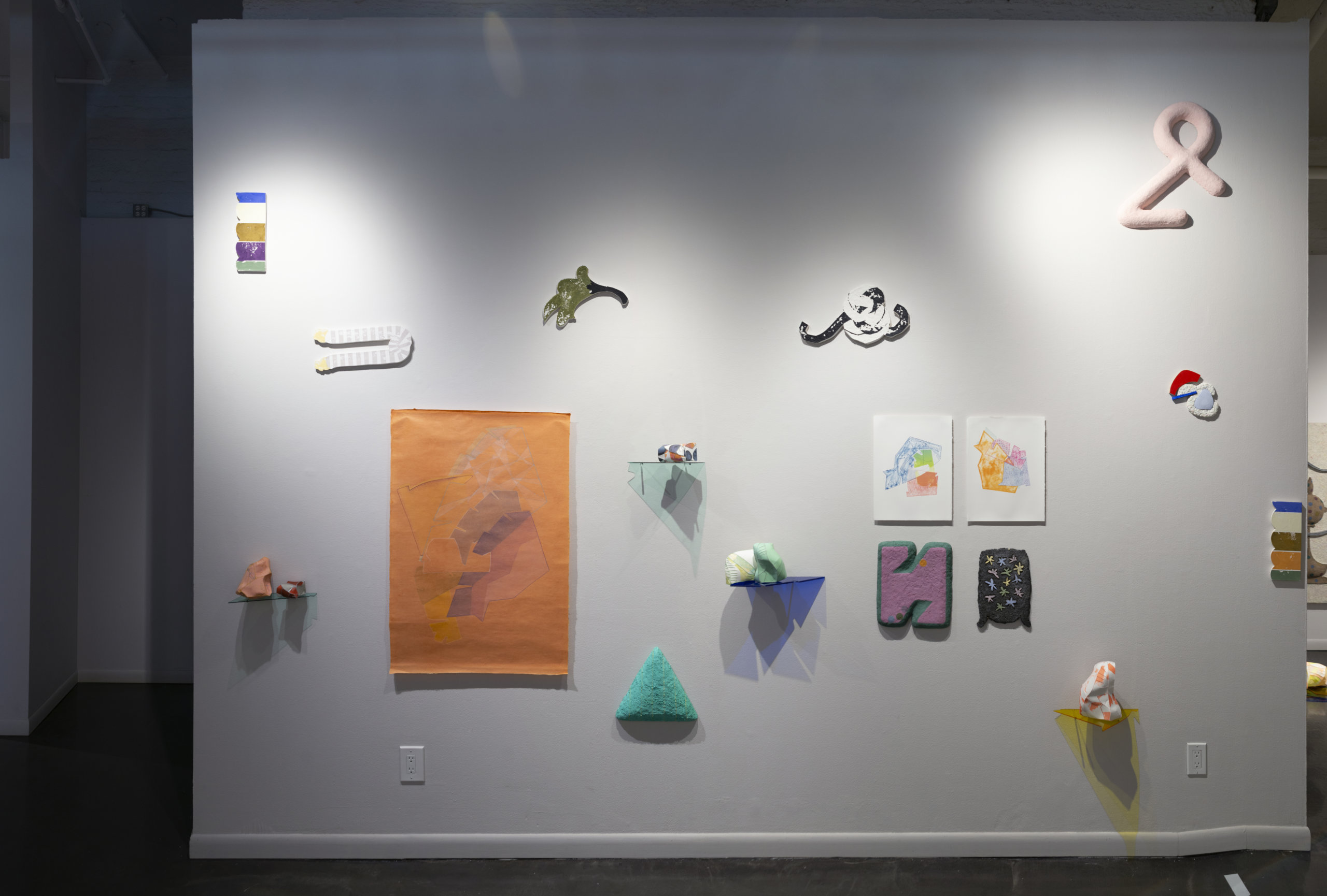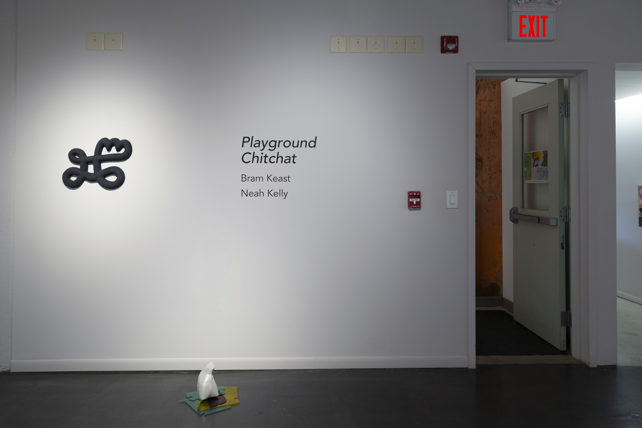 This exhibition brings together a collection of artworks by Bram Keast and Neah Kelly who work with concepts of play, tactility, and interaction in their individual practices. Through their two- and three-dimensional approaches, the artists create and break their own aesthetic rules, exploring how play and failure informs and generates conceptual practices. In Playground Chitchat, Keast draws from his body of work, Fourplay, while Kelly contributes works from various series. Both artists explore the materiality of print media, at times remixing it to a point where it is no longer easily identifiable as a screen print, a lithograph, or a monoprint. Conceptually, they also use print media in sculptural and painterly ways as they encourage viewers to engage in dialogue with them through form, imagination, and tactility.