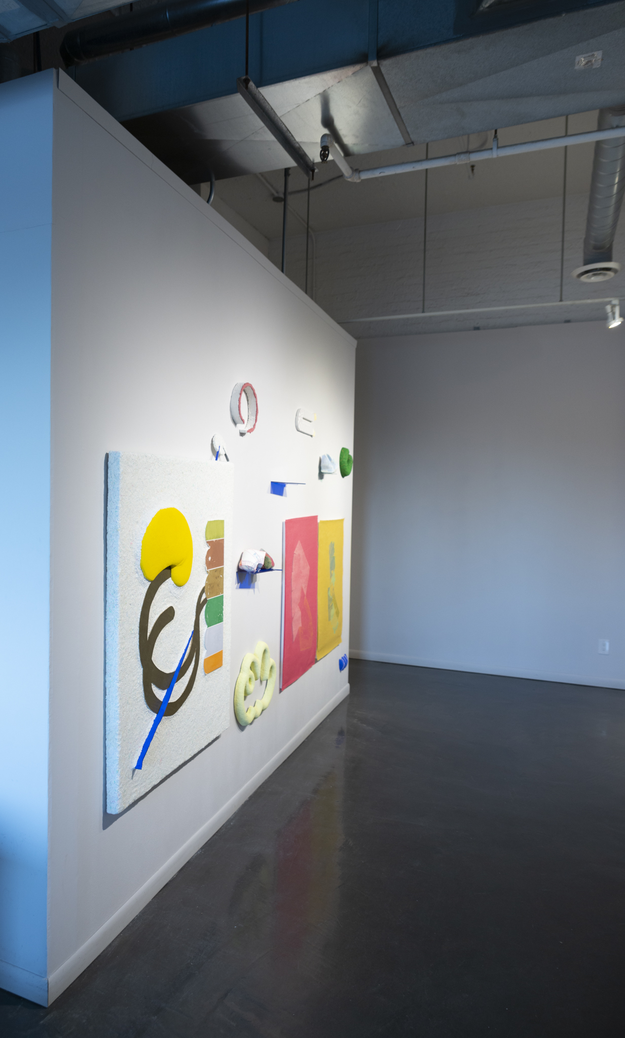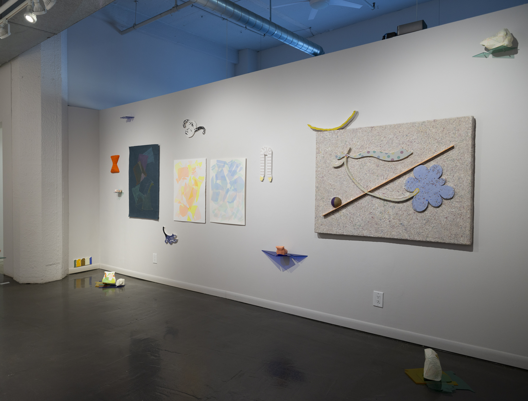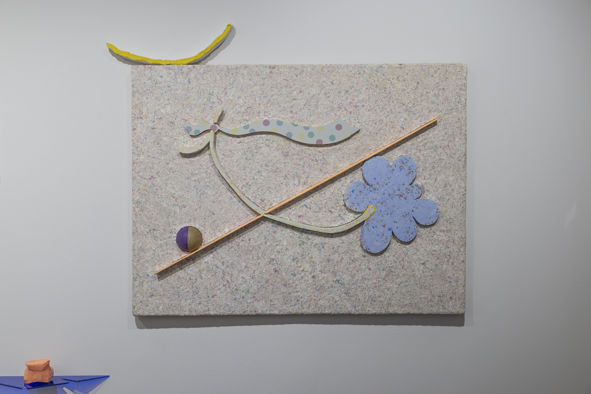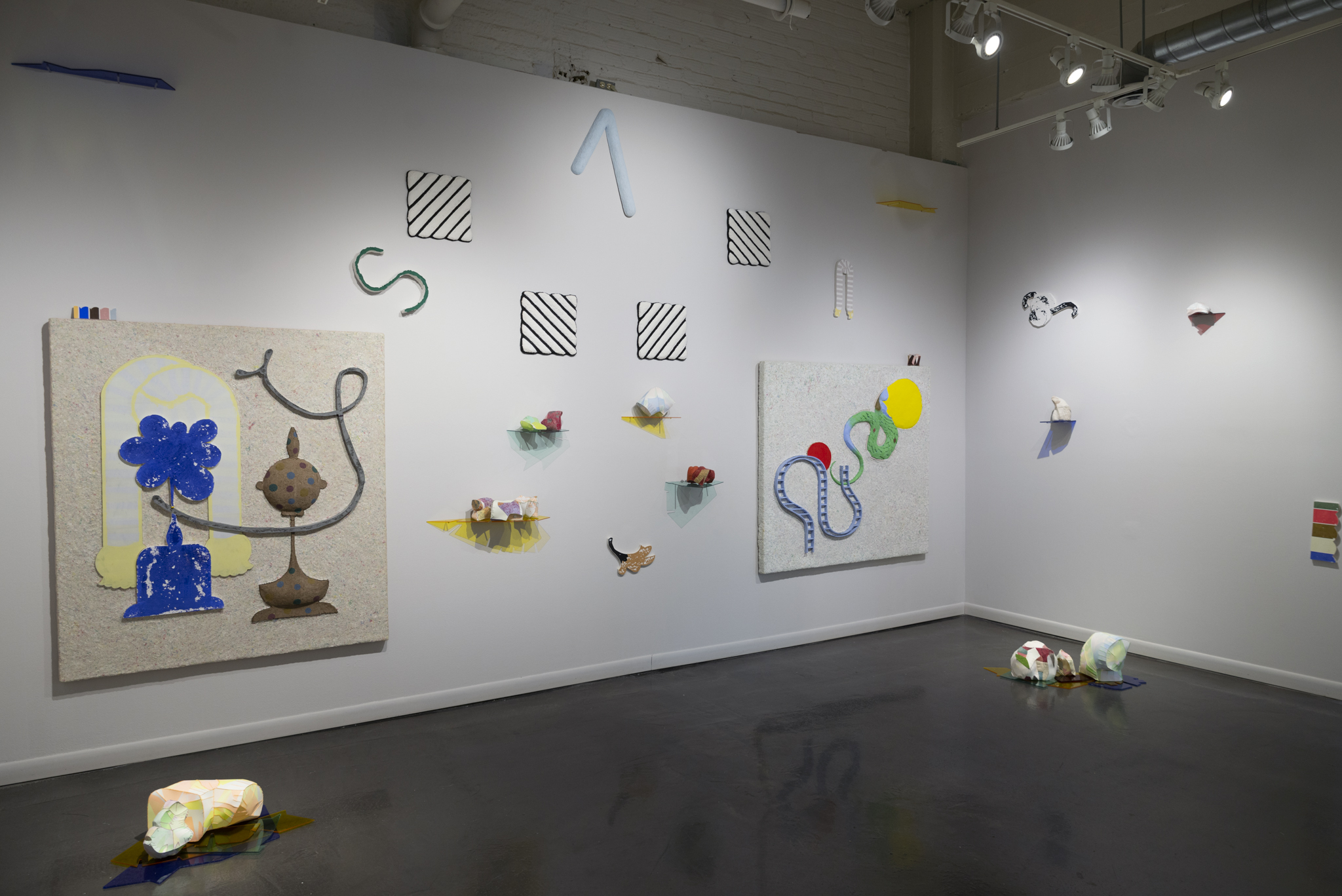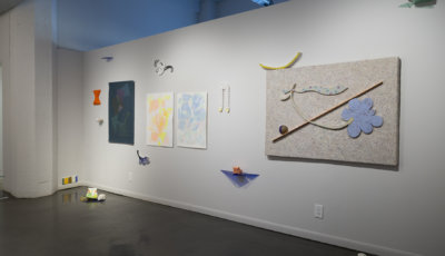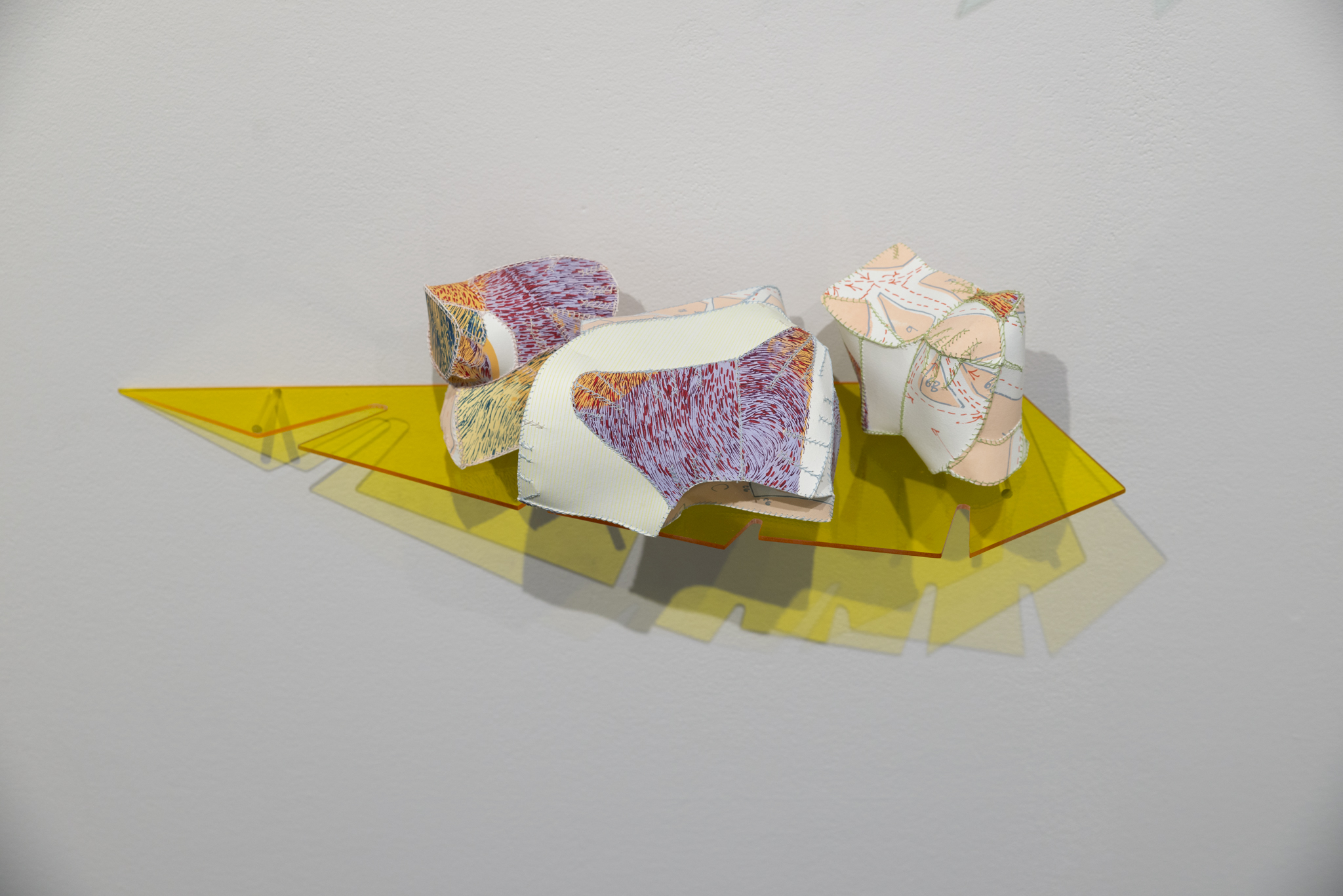 This exhibition brings together a collection of artworks by Bram Keast and Neah Kelly who work with concepts of play, tactility, and interaction in their individual practices. Through their two- and three-dimensional approaches, the artists create and break their own aesthetic rules, exploring how play and failure informs and generates conceptual practices. In Playground Chitchat, Keast draws from his body of work, Fourplay, while Kelly contributes works from various series. Both artists explore the materiality of print media, at times remixing it to a point where it is no longer easily identifiable as a screen print, a lithograph, or a monoprint. Conceptually, they also use print media in sculptural and painterly ways as they encourage viewers to engage in dialogue with them through form, imagination, and tactility.