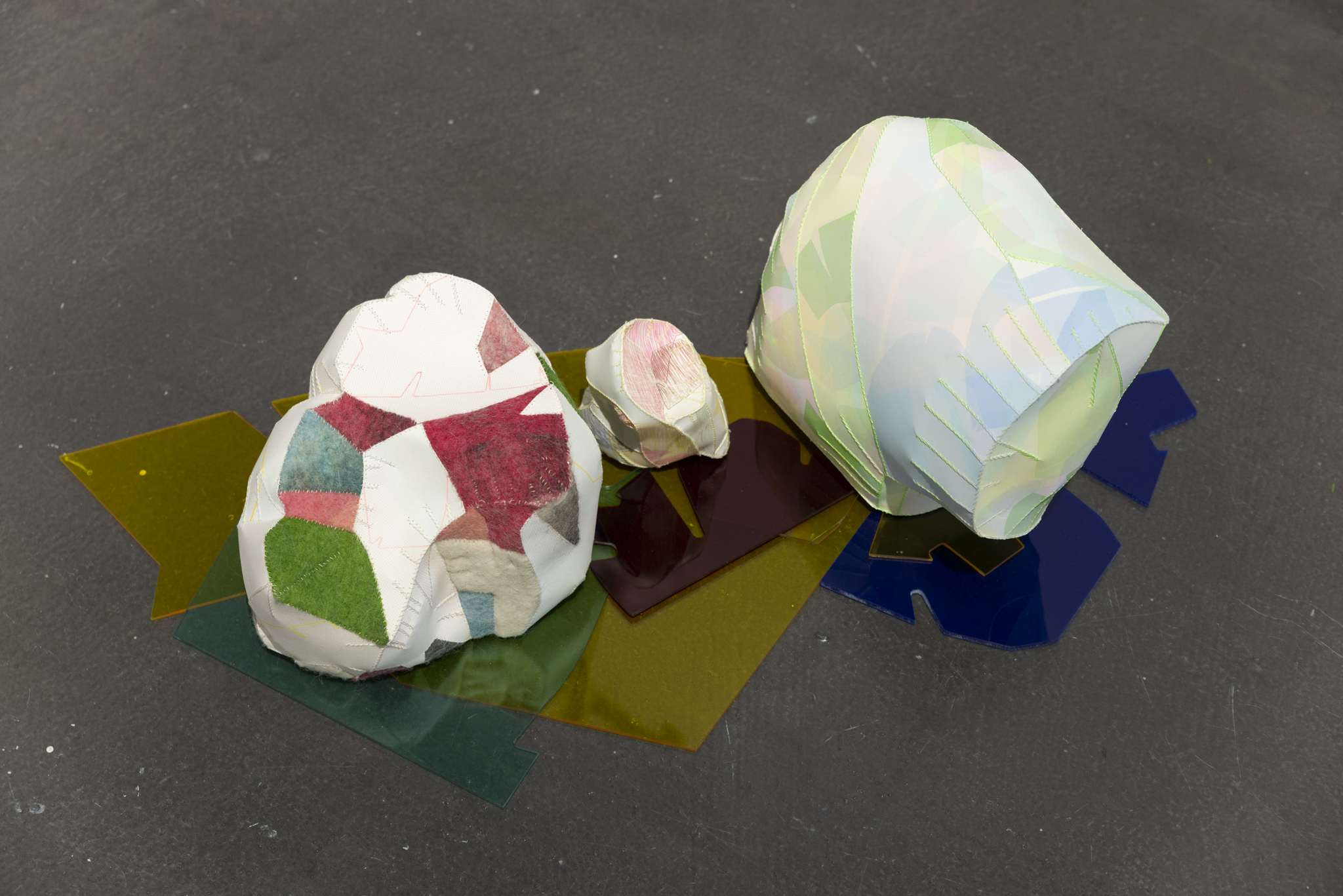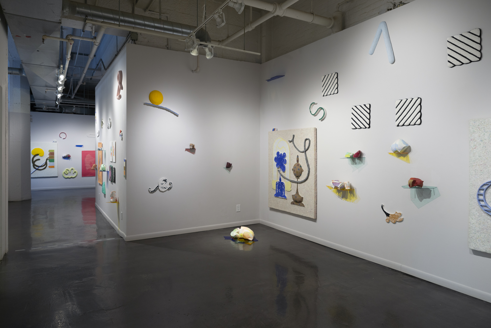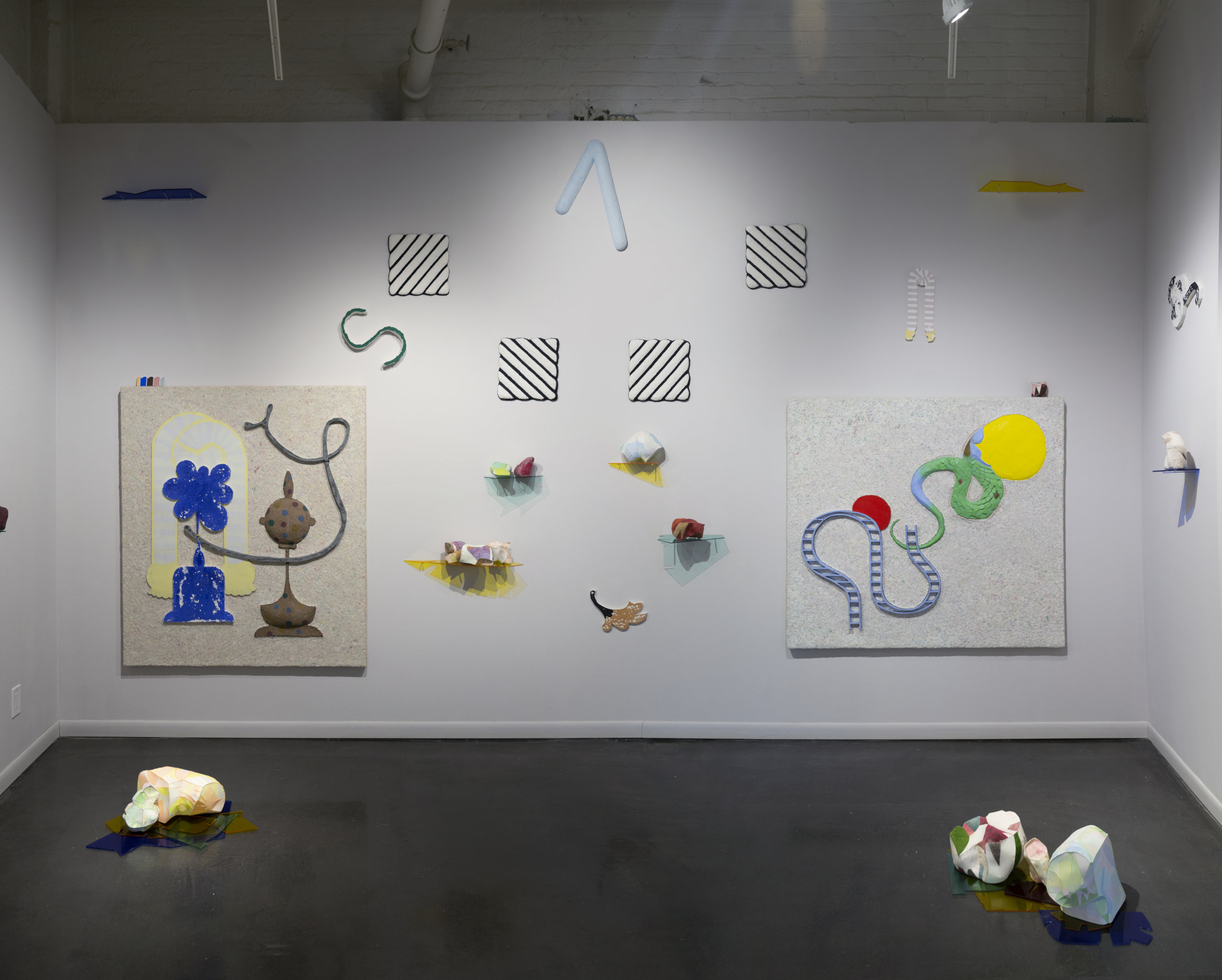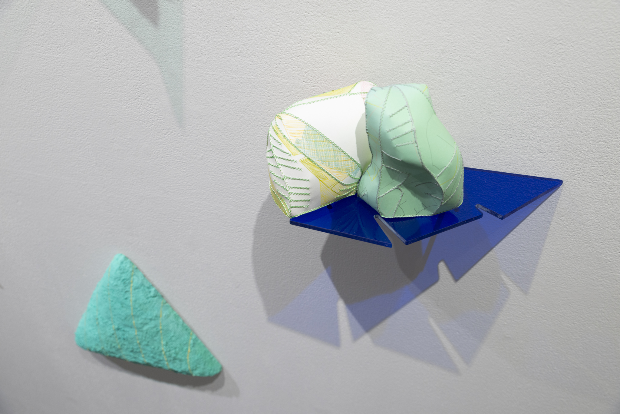 What happens when we continually draw material from the same source over and over again? It becomes a cyclical progression that comes to speak about the creative process. Using three imagined shapes as a point of origin, I work within a set of natural and self-imposed constraints to reimagine and reinterpret my imagery. This process gives birth to endless variations that morph and evolve in order to open up new subsets of inquiry. Each set of shapes are repeated and reimagined through a variety of media, from 2D to 3D. I then circle back, creating a new generation of shapes that manifest from these translations. In this way it has become an elaborate and evolving form of imaginative play. These objects are all connected–though disguised through a variety of methods, they all share a visual lineage. It is a game with myself to be constantly pushing against these limits and constraints, always with the objective to surprise myself with a new iteration–one that can exist within such a strict premise. It is a game between myself and the viewer, to see if they are willing and able to piece the process back together, to connect the dots. In short, it becomes a form of play, an activity that transcends the individual and is common to all.